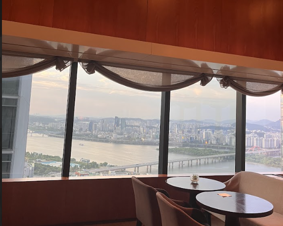 한강 및 높은 빌딩 건물들을 보며 라운지를 즐기실 수 있습니다.