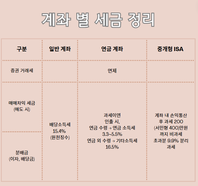 일반 투자 계좌에서 ETF를 매매할 경우, 즉시 15.4% 과세되지만 연금계좌는 연금을 수령할 때까지 과세하지 않아 세금을 절약할 수 있는 한가지 방법입니다.