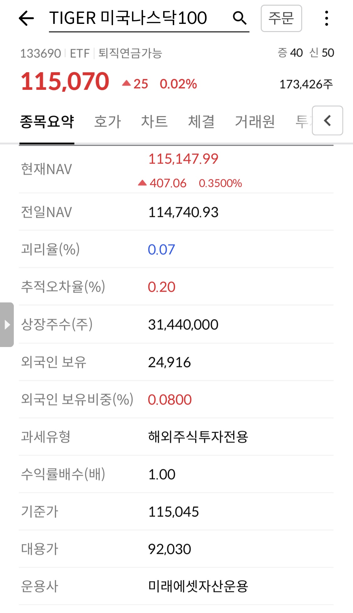 TIGER 미국 나스닥100 창을 보면 현재 NAV와 시장가격이 115,147원 vs 115,070원으로 다른 걸 볼 수 있는데요. 두개의 가격은 어떻게 결정되는 건지 의문이 생기실 겁니다.