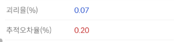 즉, 추적 오차는 ETF가 추종하는 기초지수와 NAV(순자산 가치)의 차이를 말하기 떄문에 NAV 가 기초지수의 움직임을 얼마나 잘 쫓아가는지 알고 싶다면 추적 오차를 보면 됩니다.