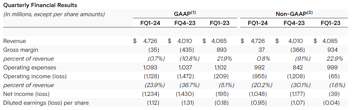 주당순이익 EPS는 $-0.95이며, 매출은 $4.73B로 발표되었습니다.
