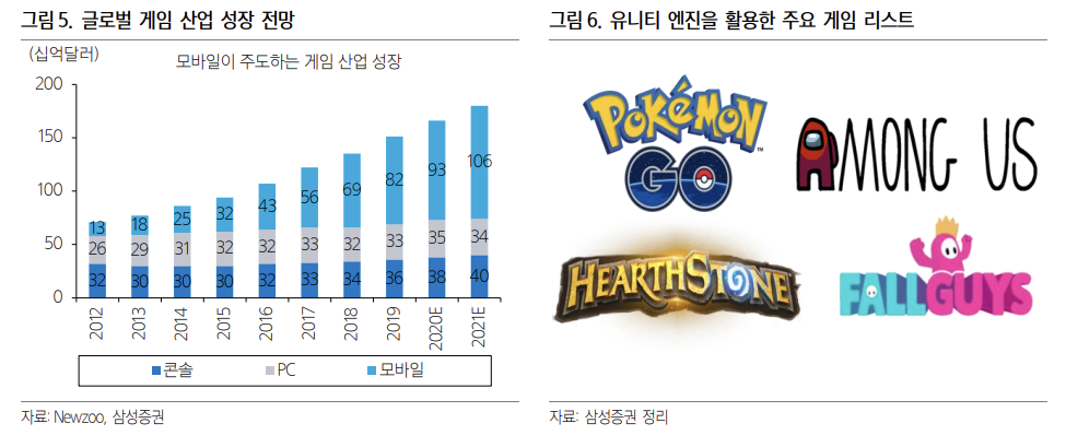 Unity Software는 유니티 게임 엔진으로 유명한 서드파티 게임 개발용 소프트웨어 기업입니다. 3D 및 2D 비디오 게임의 개발 환경을 제공하는 게임 엔진이자, 3D 애니메이션 건축 시각화, VR 등 인터랙티브 콘텐츠 제작을 위한 통합 제작 도구입니다. 유니티는 2004년 덴마크에서 데이비드 헬가손 등에 의해 게임 개발사로 설립되었으나, 흥행에 실패하며 현재는 게임 개발 도구 개발사로 전환했습니다. 게임 개발 도구는 개발자들이 게임을 구축하거나 디자인할 수 있게 도와주는 소프트웨어 도구를 일컫습니다. 유니티의 대표 제품은 '유니티'이며 2020년 기준 유니티의 모바일 게임 개발 소프트웨어 시장 점유율은 50%를 기록하고 있습니다. 특히 글로벌 Top 100 게임사 중 94개가 유니티의 고객일 만큼 유니티 엔진은 세계에서 가장 널리 사용되는 실시간 RT3D 개발 플랫폼입니다. 유니티는 윈도우, iOS, 안드로이드, 엑스박스, 닌텐도 등 27개의 플랫폼에서 사용할 수 있는 콘텐츠를 만들 수 있고, 제작 도구인 유니티 에디터는 윈도우와 맥OS를 지원하고 있습니다. 유니티의 게임 개발에 사용하는 스크립트 언어는 자바스크립트 C#을 지원하며 도형으로 프로그래밍할 수 있어 코딩이 능숙하지 않은 개발자도 쉽게 코딩이 가능하다는 장점을 가지고 있습니다. 유니티의 사업 부문은 Create 솔루션, Operate 솔루션, 파트너십 및 기타로 구분됩니다. Create 솔루션 분야는 게임엔진으로 구독 형태로 제공하고 있으며 Operate 솔루션 분야는 클라우드 기반으로 분석, 수익화, 호스팅 서비스 등을 제공하고 있습니다. 파트너십 및 기타 부문은 하드웨어, 게임 콘솔, OS 등 플랫폼을 제공하는 기업과 파트너십을 맺어 고객사의 플랫폼과 유니티의 소프트웨어 간 호환을 통해 게임 및 애플리케이션의 용이한 출시를 가능하게 합니다.