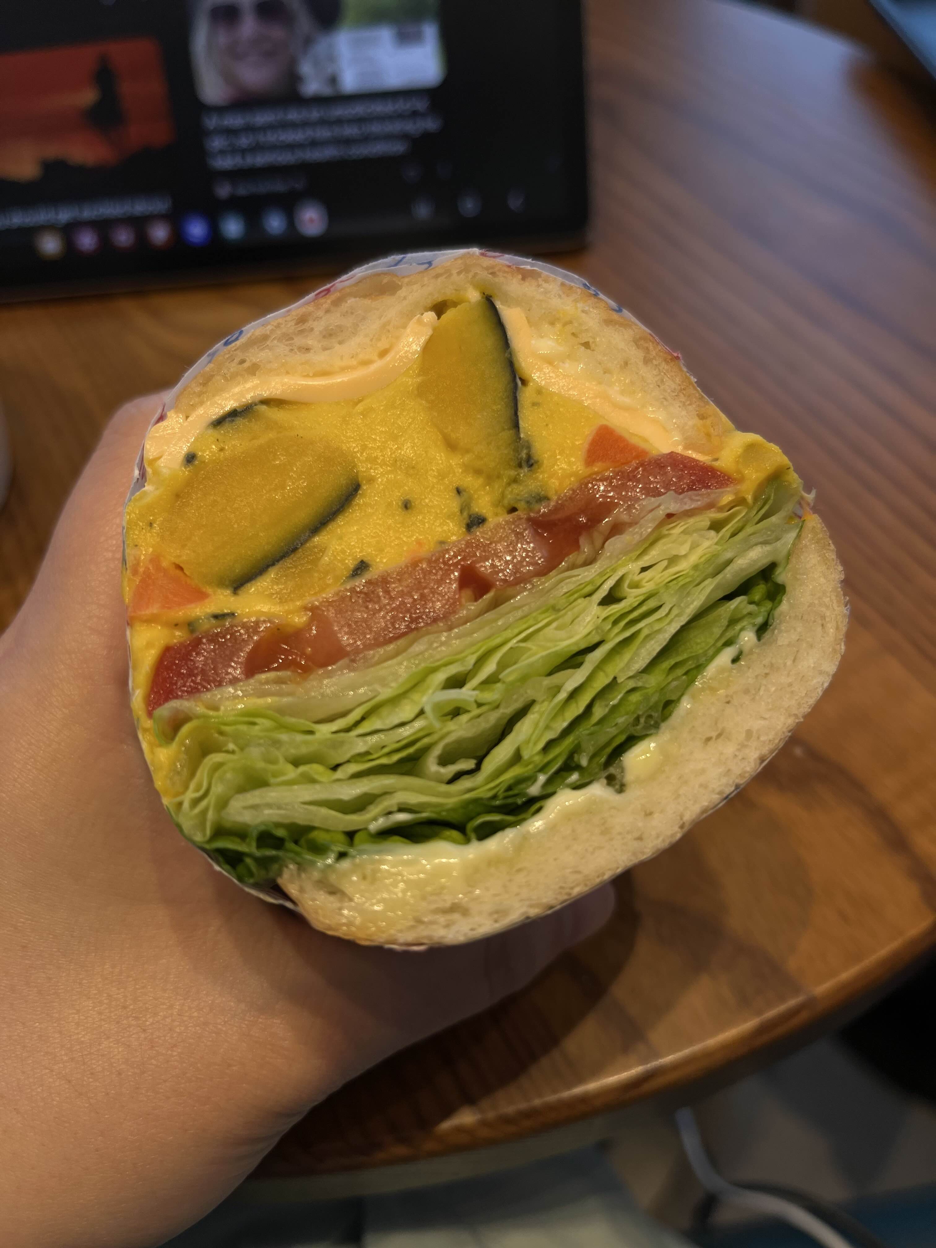 단호박 샌드위치는 단호박 무스가 엄청 맛있더라구요. 달달하고 토마토와 양상추랑 같이 먹으니 건강한 한끼로 충분하네요 : )