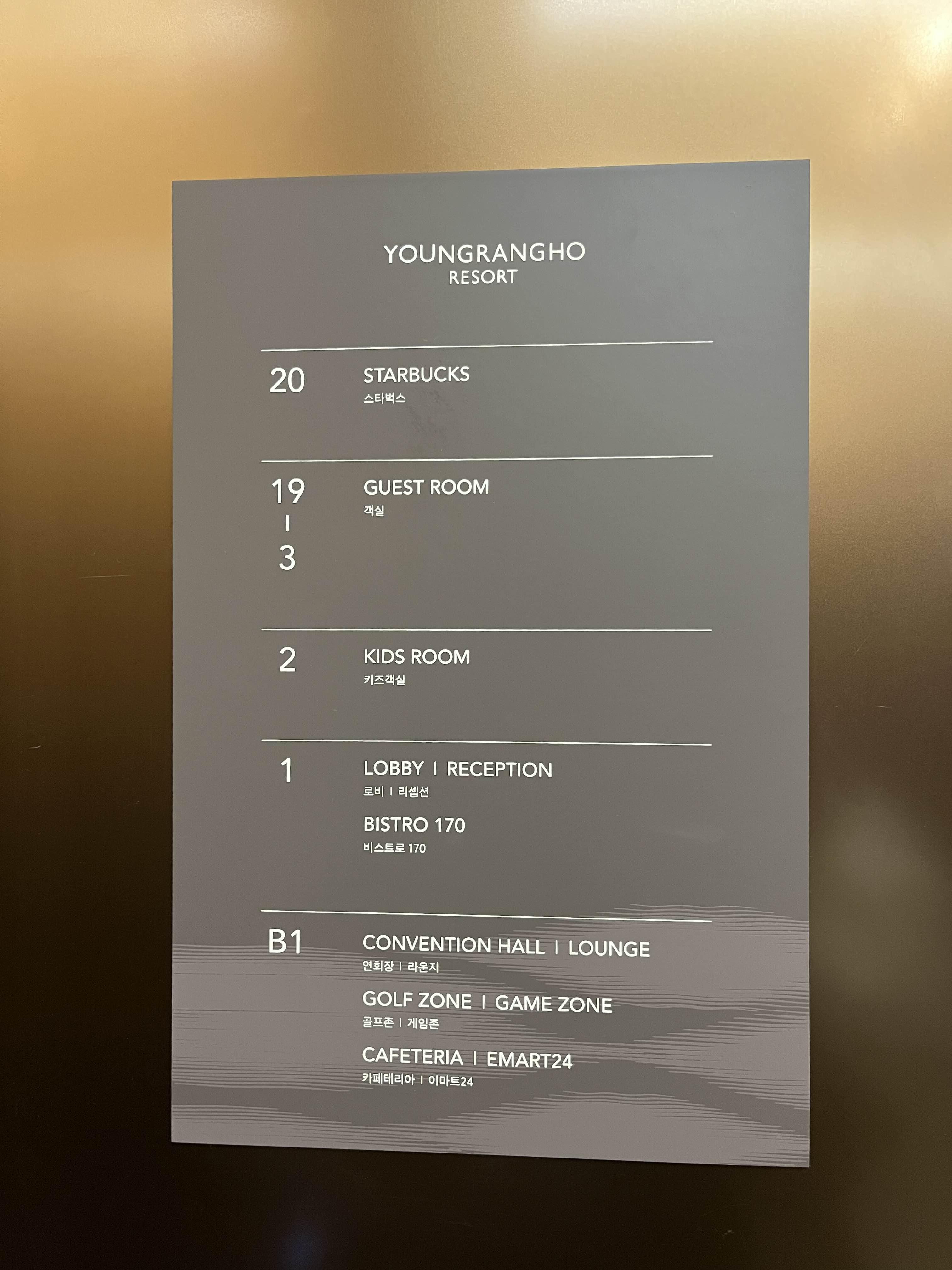 리조트 정문으로 들어가자마자 엘레베이터를 타고 20층으로 향했습니다.