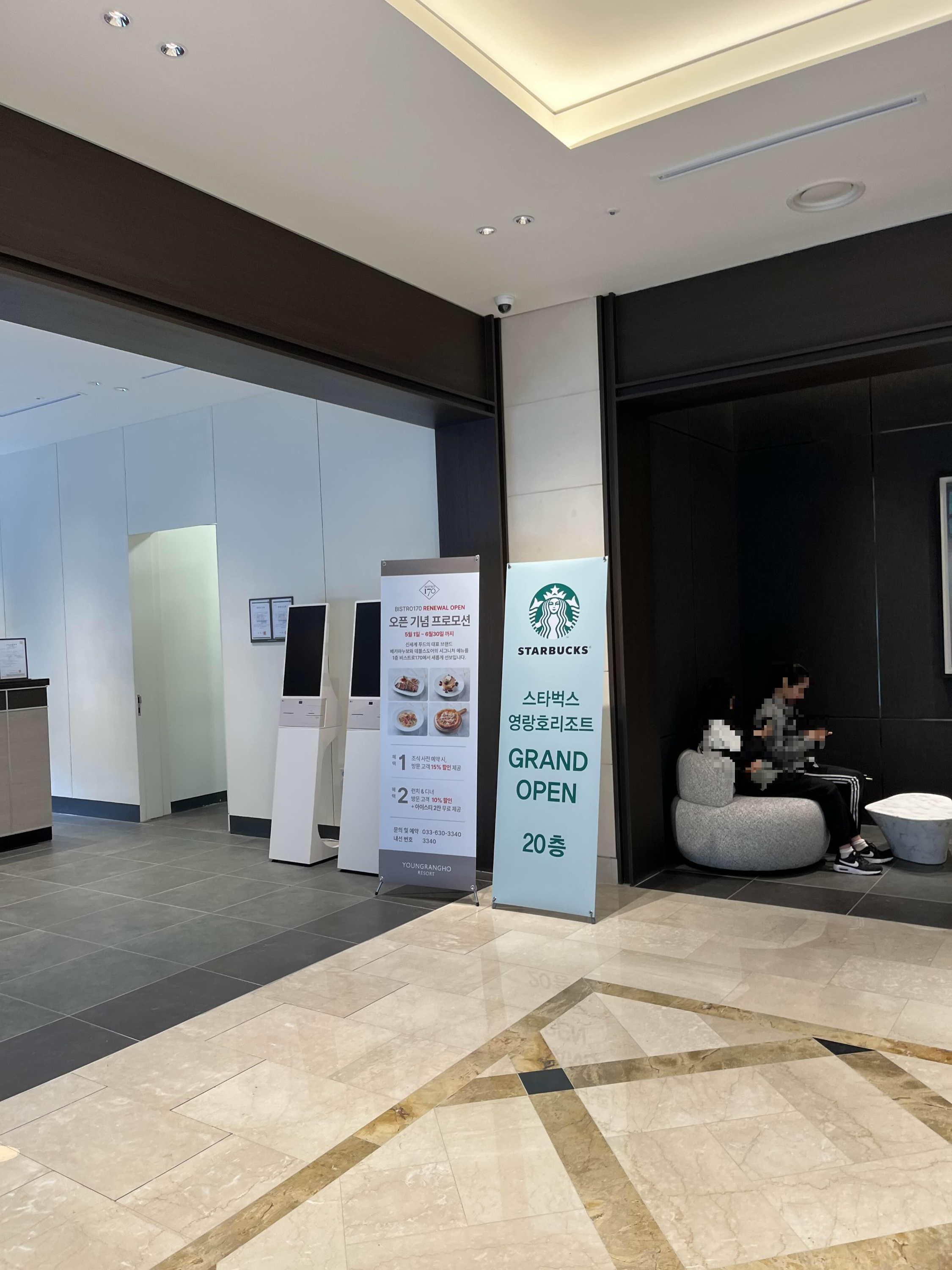 로비에도 스타벅스 영랑호리조트 Grand OPEN이라는 판넬이 새워져 있네요 : )