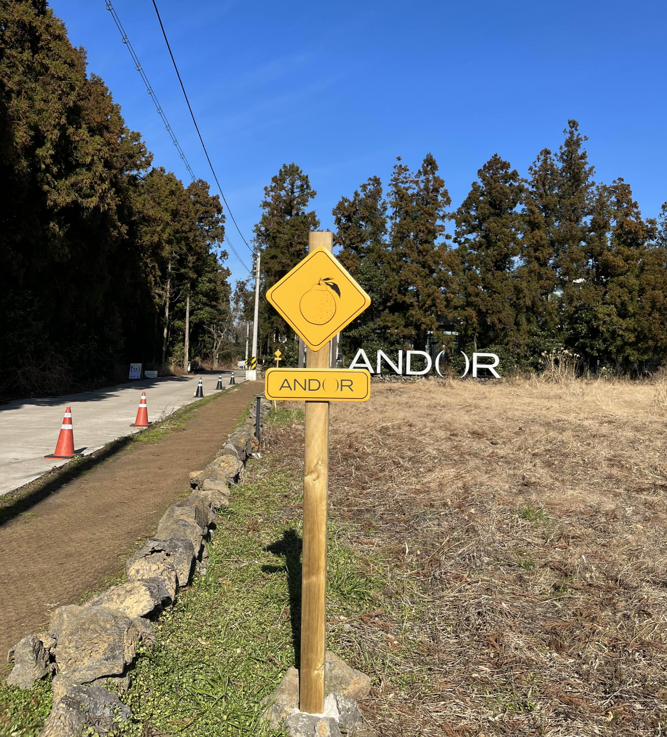 주차장 부터 카페 입구까지 AND( )R 노란색 표지판이 세워져 있는데, 카페의 마스코트인 돌고래와 한라봉인 것 같네요.