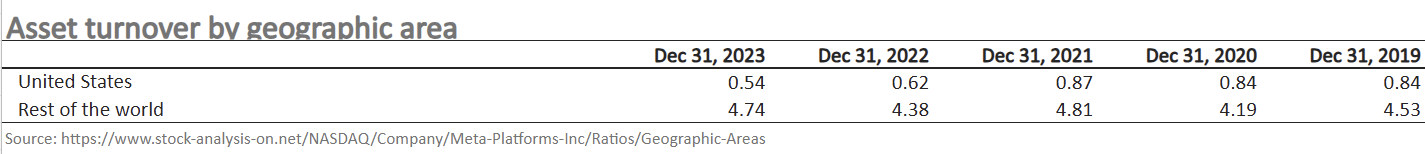 Meta 의 수익의 10%는 미국에서 창출되며, 나머지 90%는 미국을 제외한 전세계 국가에서 발생합니다.