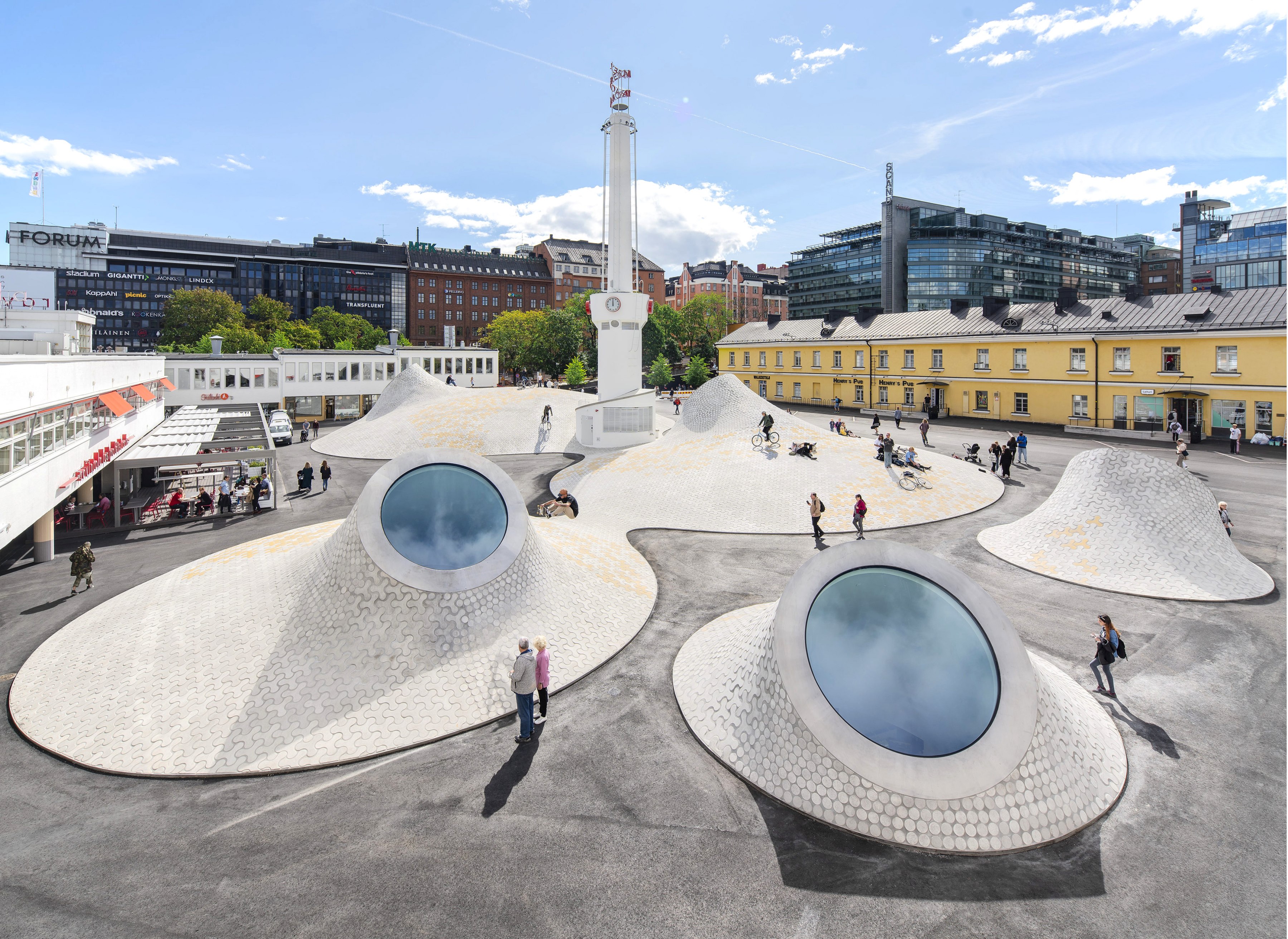 아모스 렉스 시립 미술관은 헬싱키에서 가장 혁신적이고 현대적인 미술관 중 하나로 2018년에 오픈했습니다. 이 미술관은 과거 라스팔라티 건물의 지하를 개조해 만들어졌으며, 건물 외부의 독특한 돔 형태의 창들이 방문객들의 눈길을 사로잡습니다.
