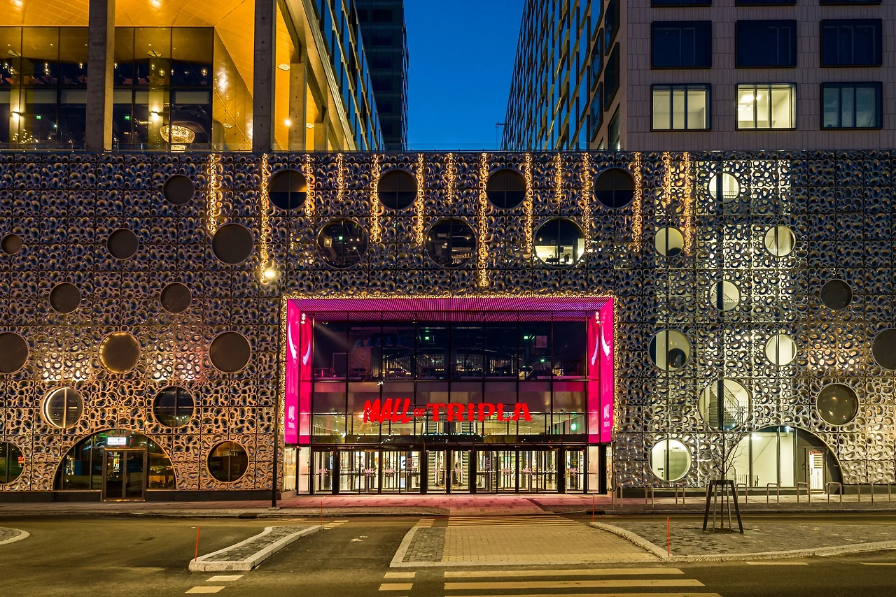 트리플라 몰은 2019년에 문을 연 쇼핑몰로 헬싱키 중심부 Pasila 지역에 위치하고 있습니다