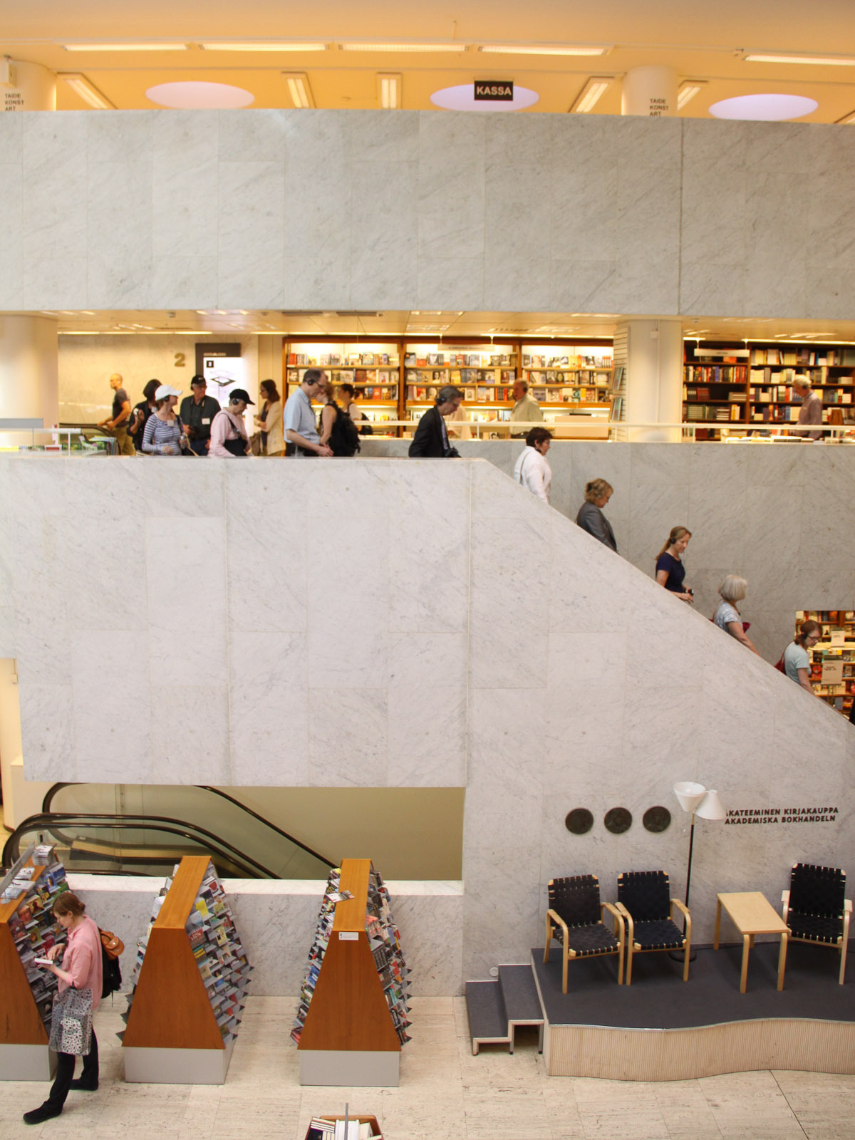 핀란드 대표 건축가 알바 알토가 설계한 서점으로, 단순히 책을 판매하는 공간을 넘어 문화와 예술이 공존하는 상징적인 장소입니다.