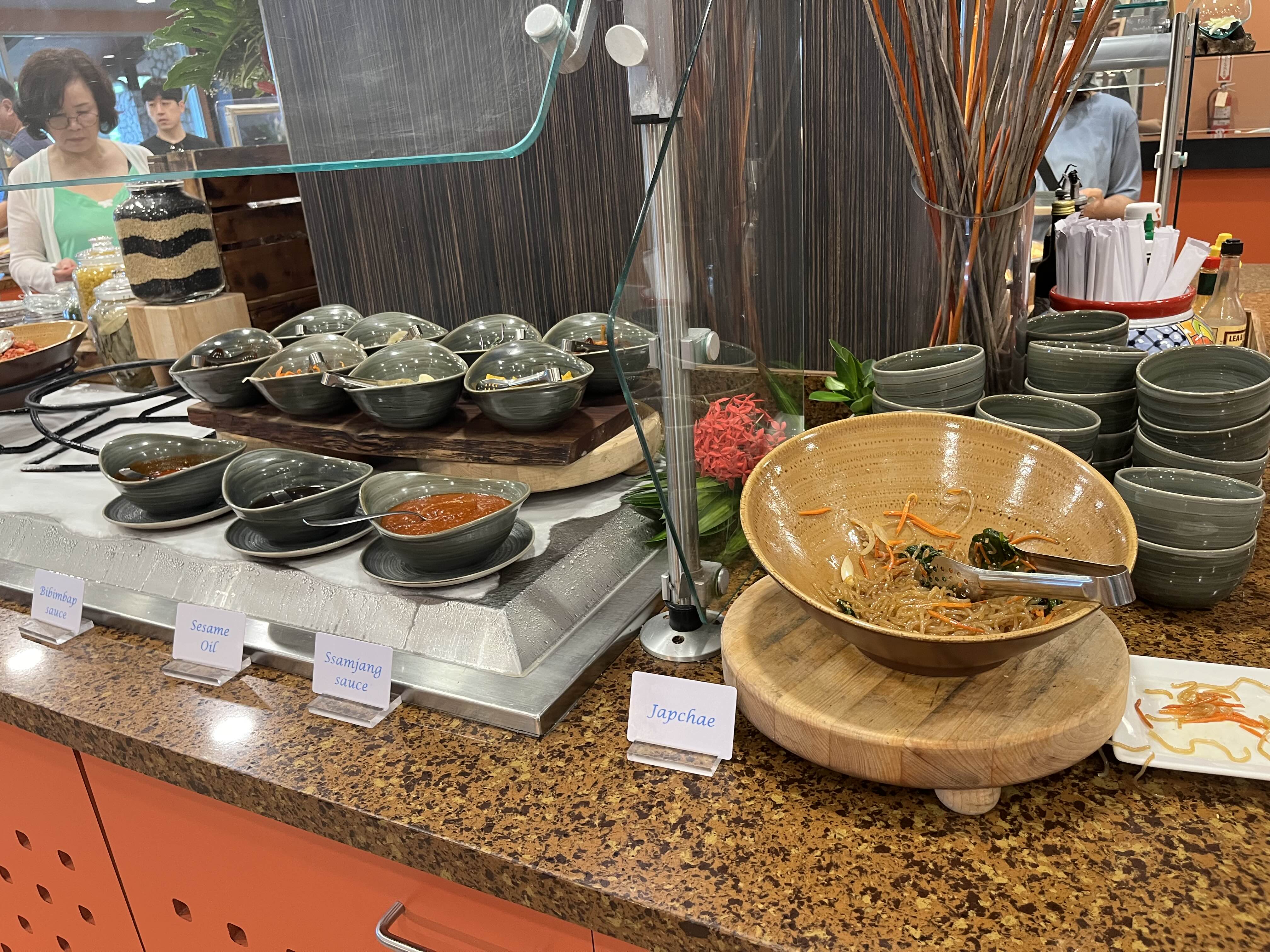 잡채와 비빔밥 야채와 재료들이 준비된 코너가 있었습니다. 👍👍👍