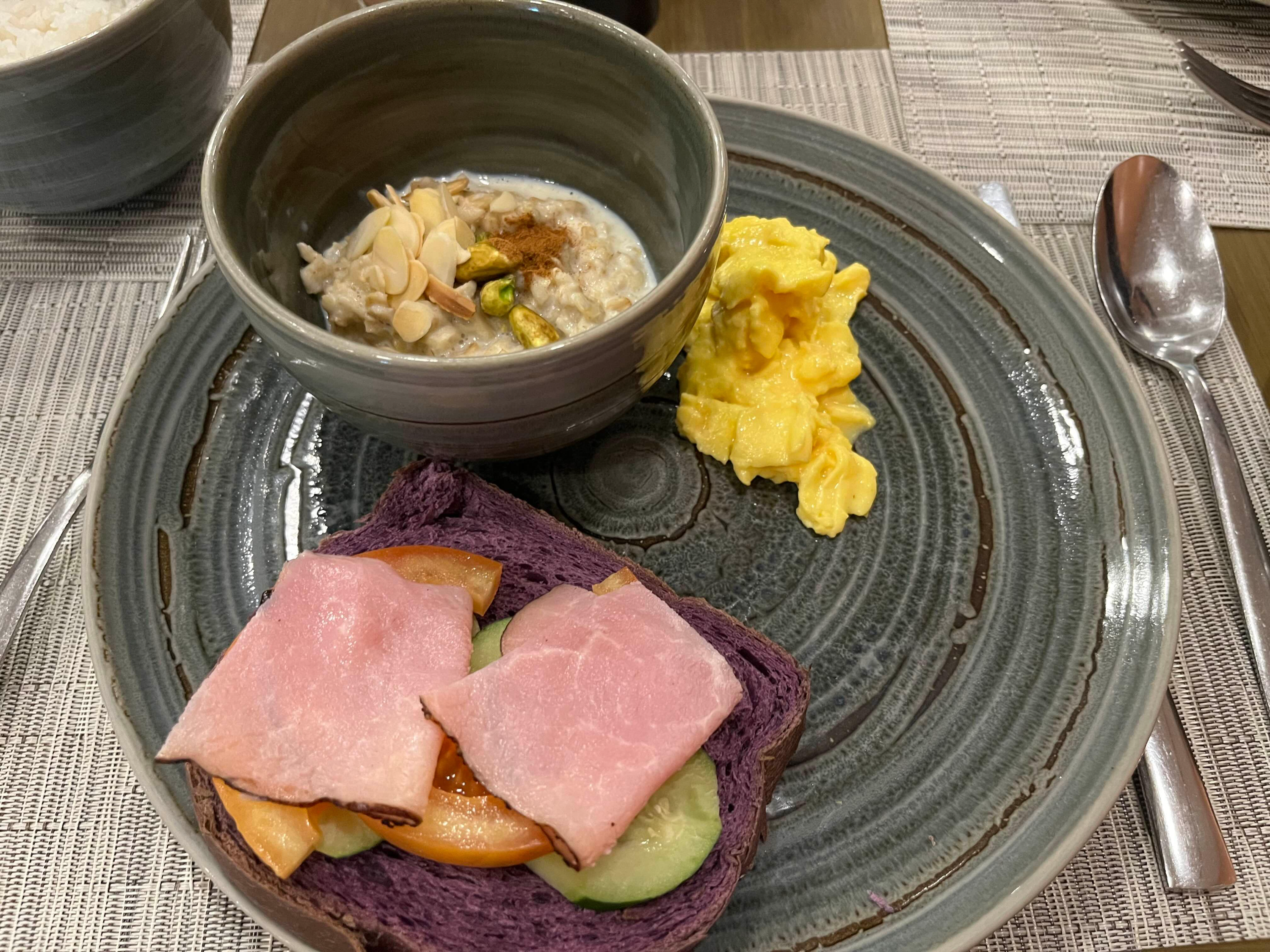 오트밀과 스크램블 에그도 같이 먹어주었땁니다.!