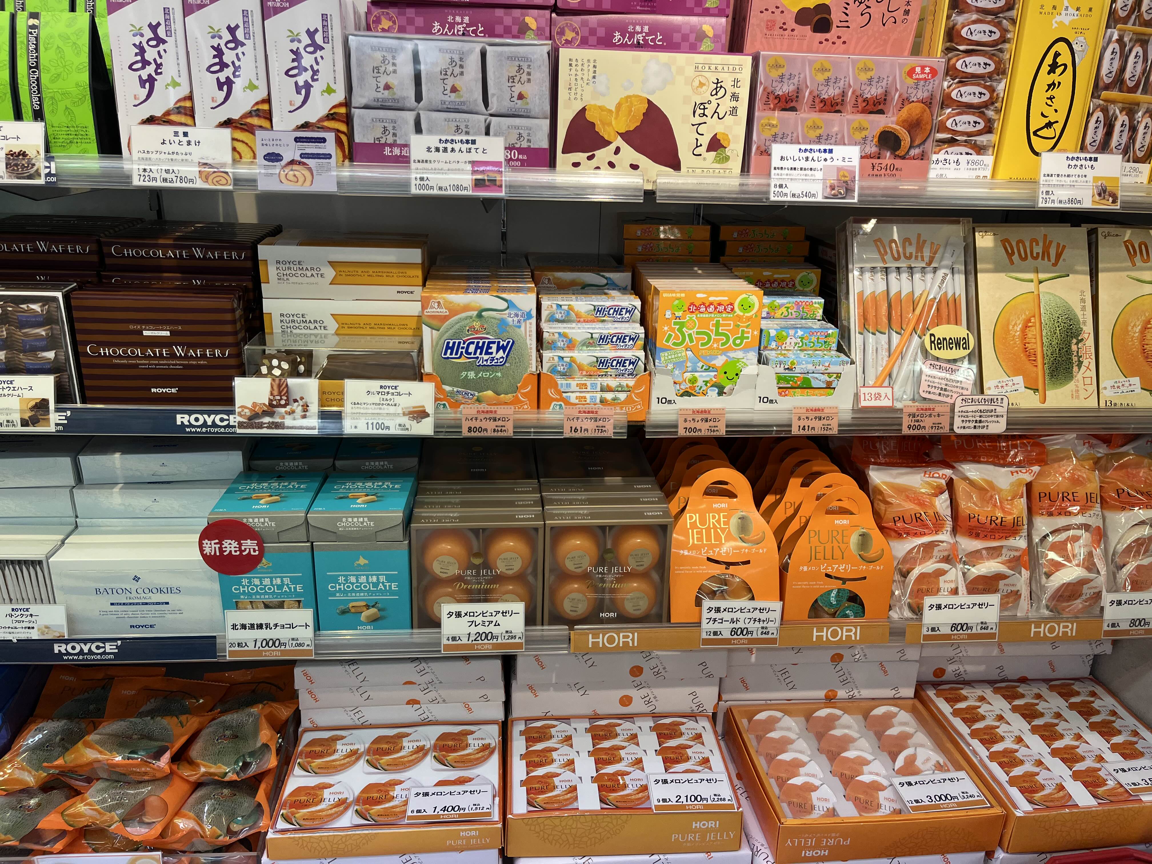 유바리 메론으로 만든 젤리부터 포키 과자, 빵 등 다양한 기념품을 만나실 수 있습니다.