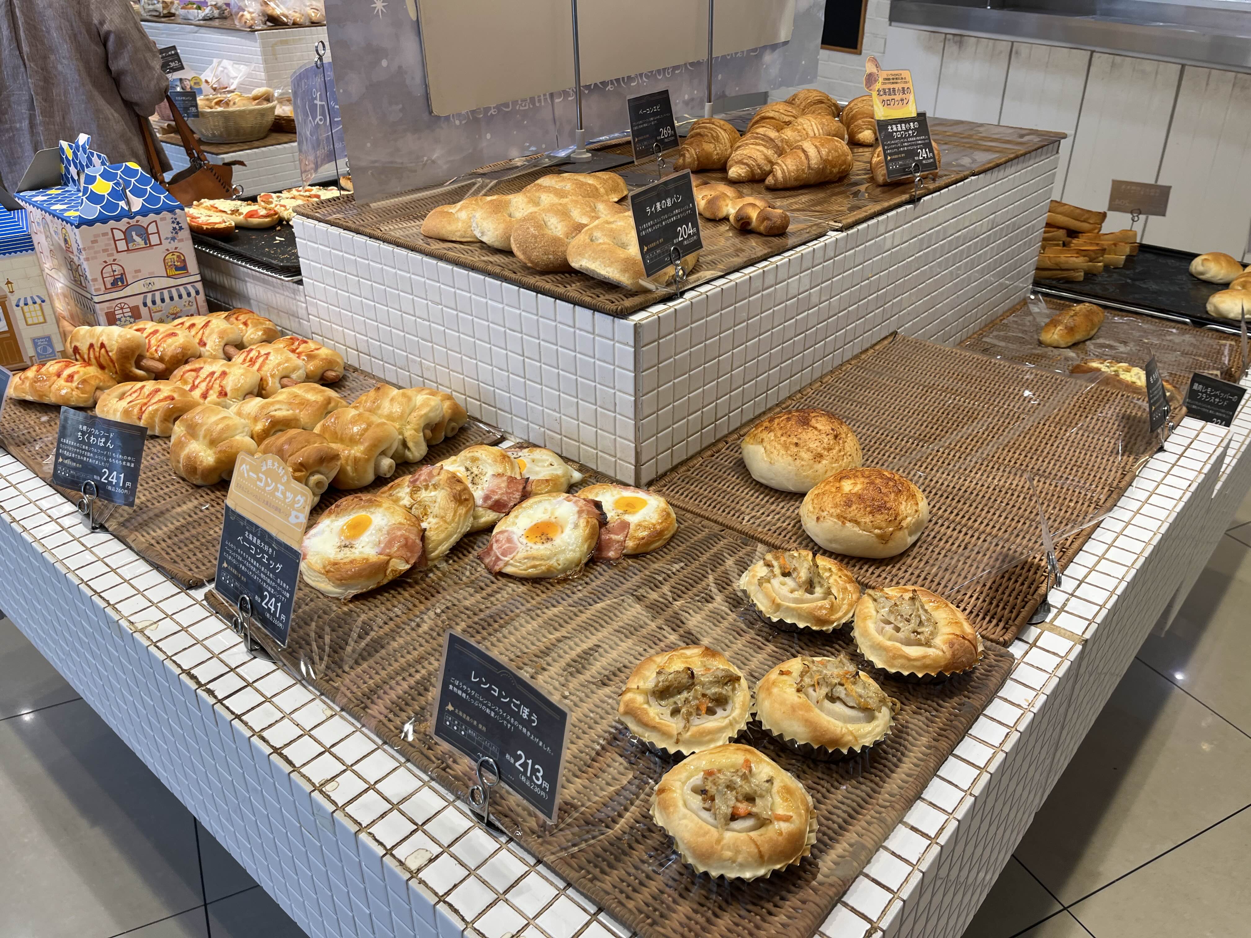 여기는 로컬 빵집이라 그런지 모든 빵 이름이 일본어로 적혀 있어서 빵 모양만 보고 무슨 빵인지 유추해야 했다! 나는 빵순이니까 겉모습만 보고도 무슨 빵인지 다 알지. 엣헴