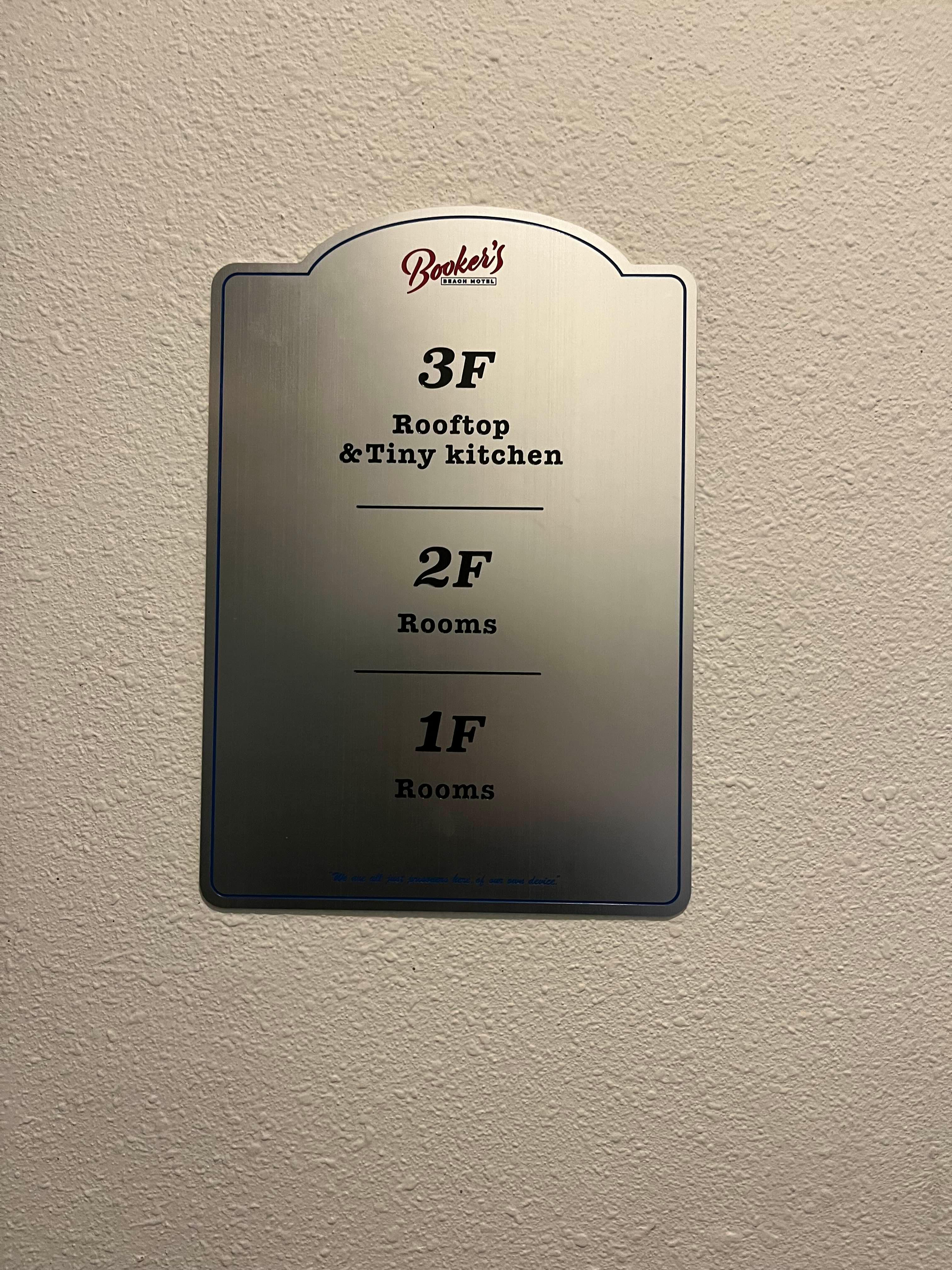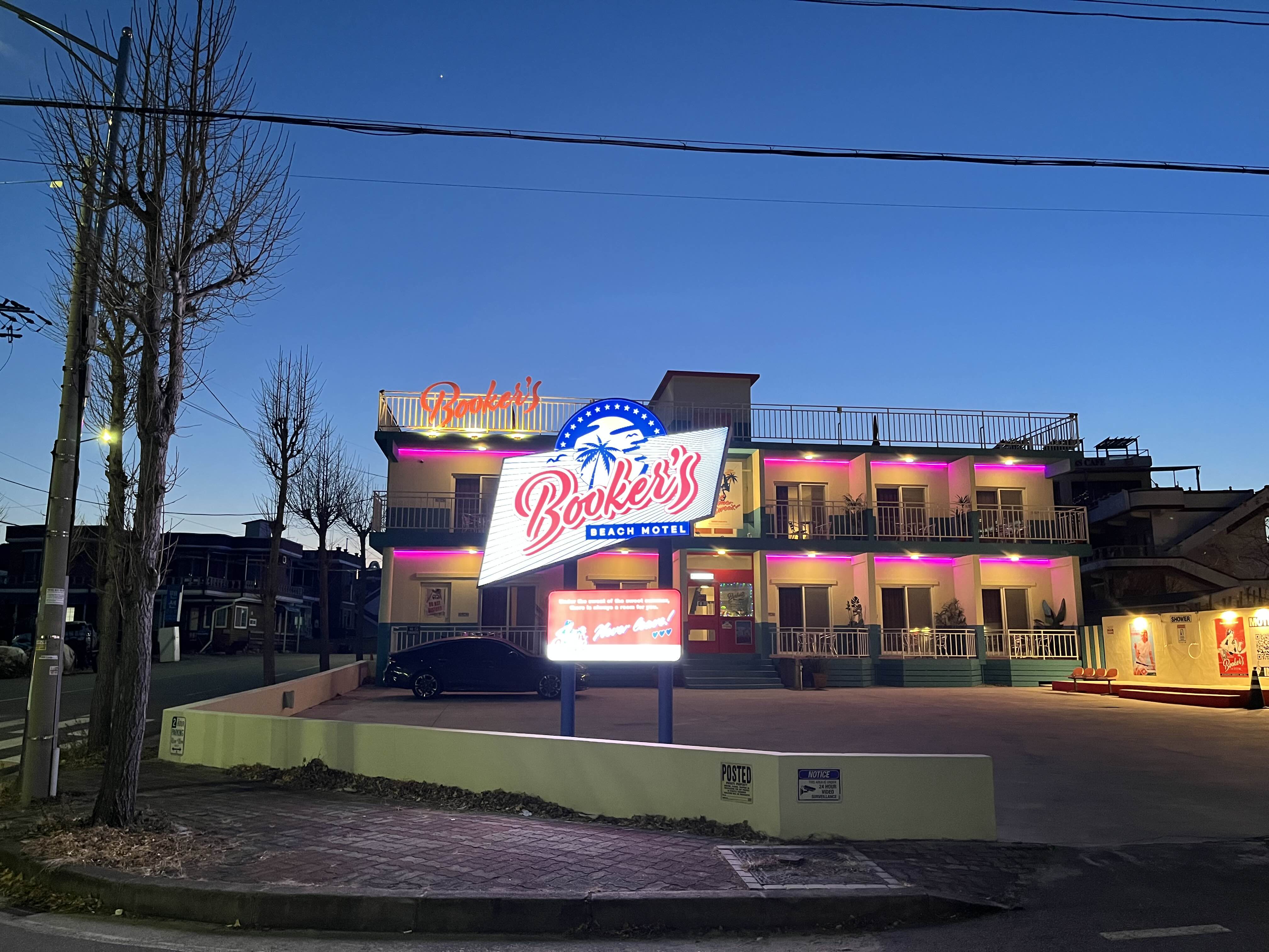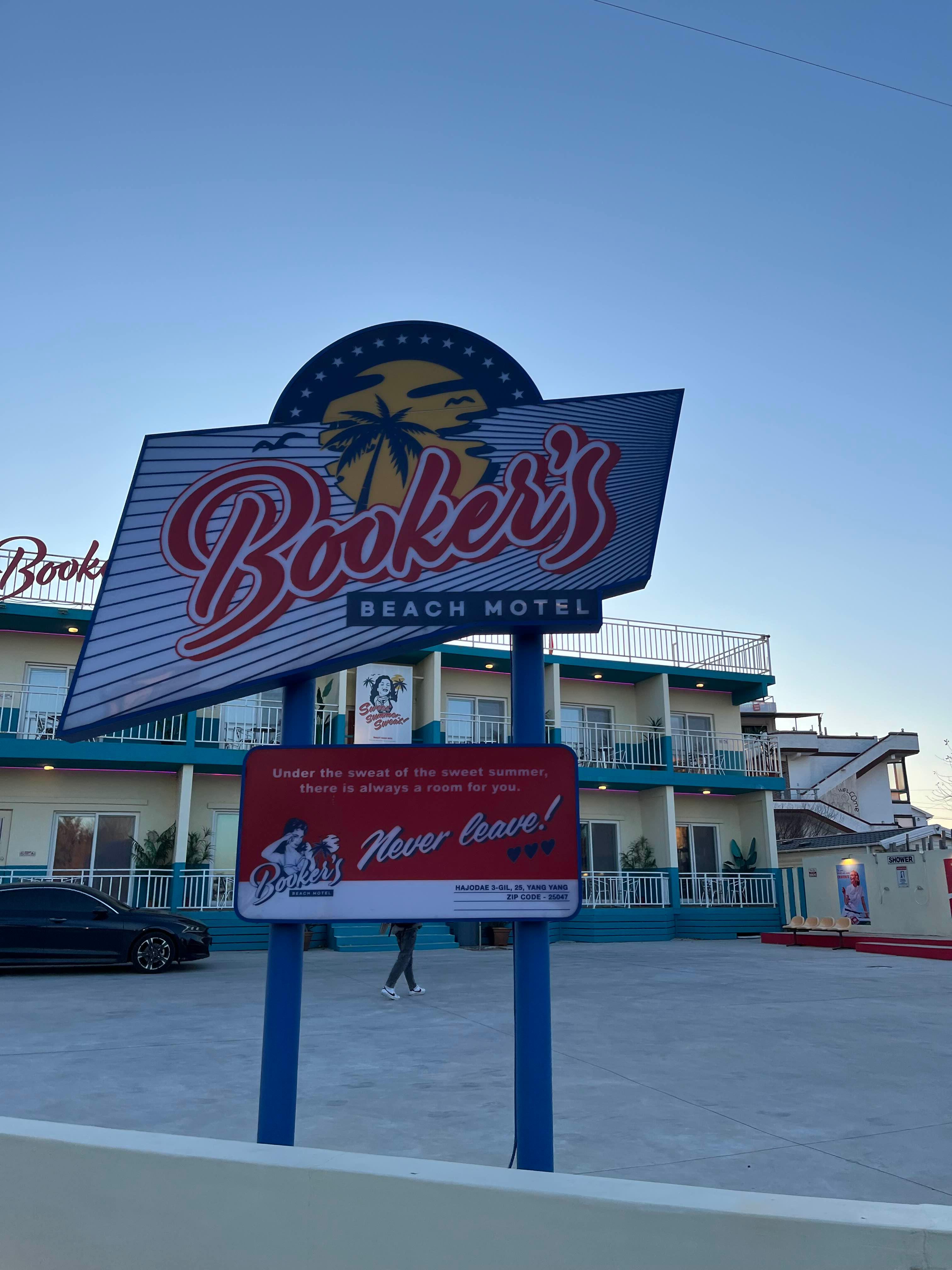 숙소 입구에는 Booker's Beach Hotel 표지판이 세워져 있는데, 미국 영화에서 보는 미국 모텔 느낌이 물씬 나지 않나요? ㅋㅋㅋㅋ