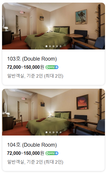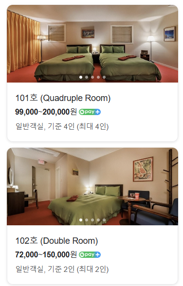 방 타입은 더블룸, Triple Room, Quadruple Room으로 2인부터 최대 4인까지 입실 가능하며,