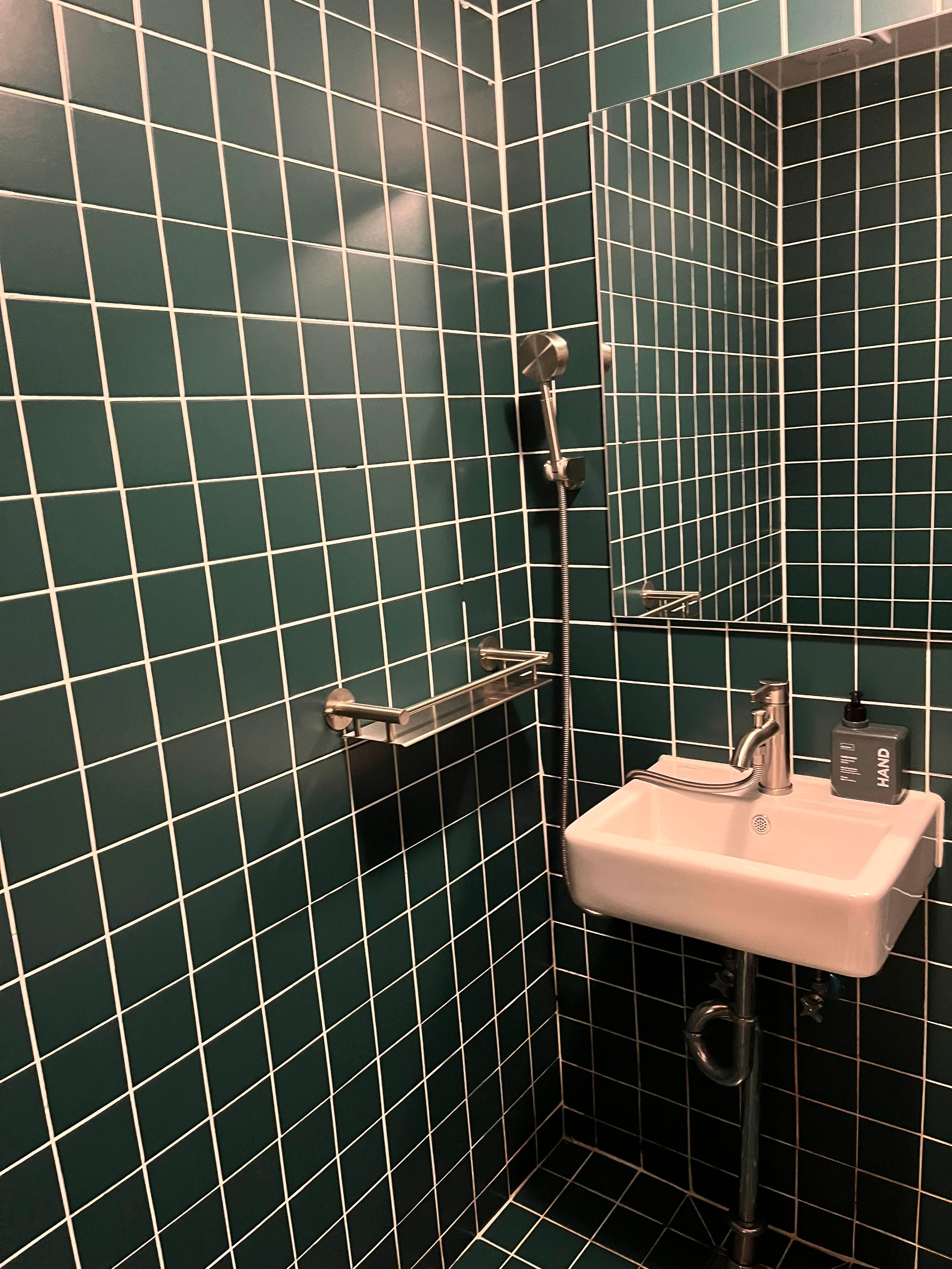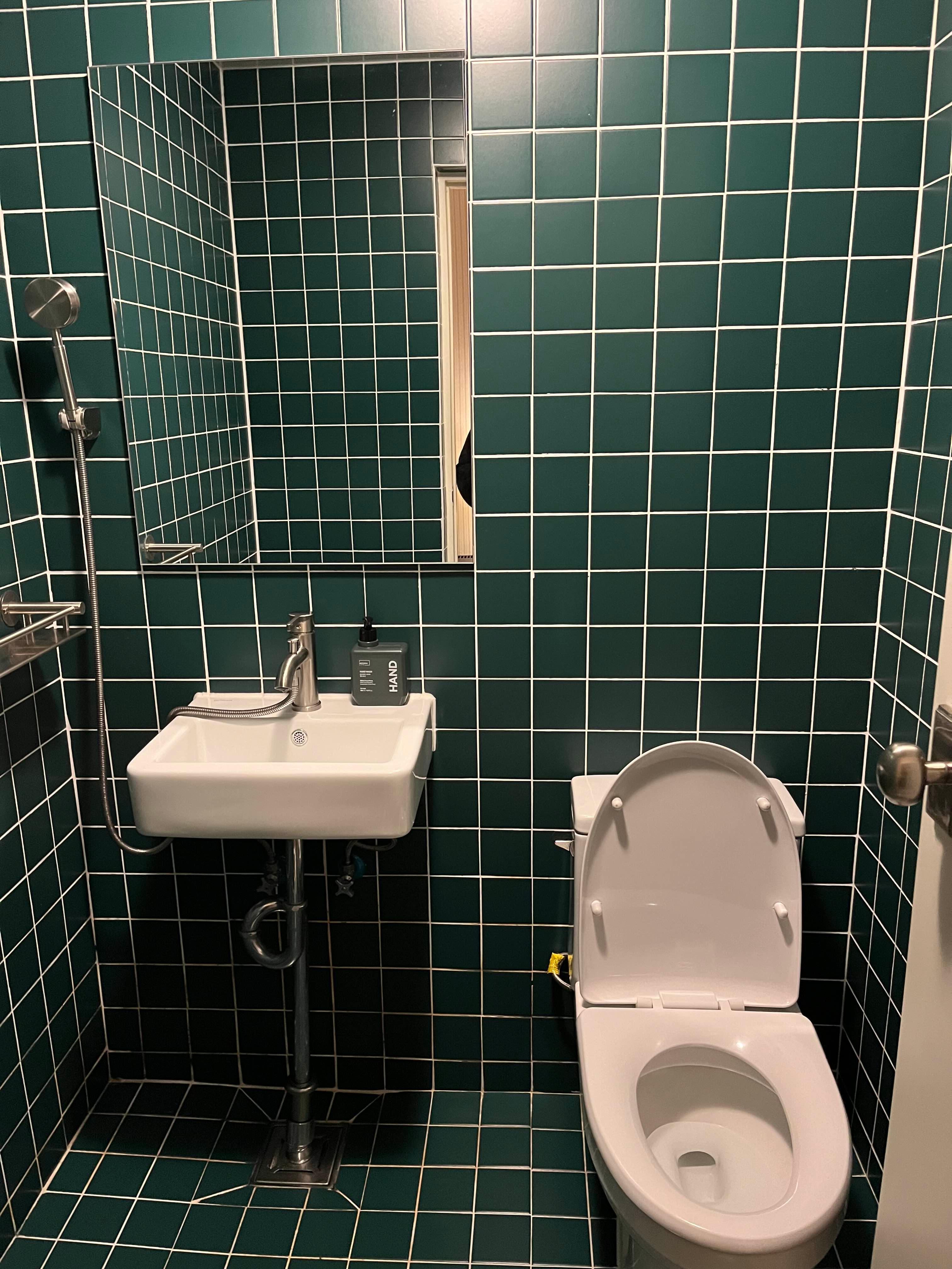 화장실은 엄청 깨끗하고, 초록색 타일이 넘 인상적이었습니다.