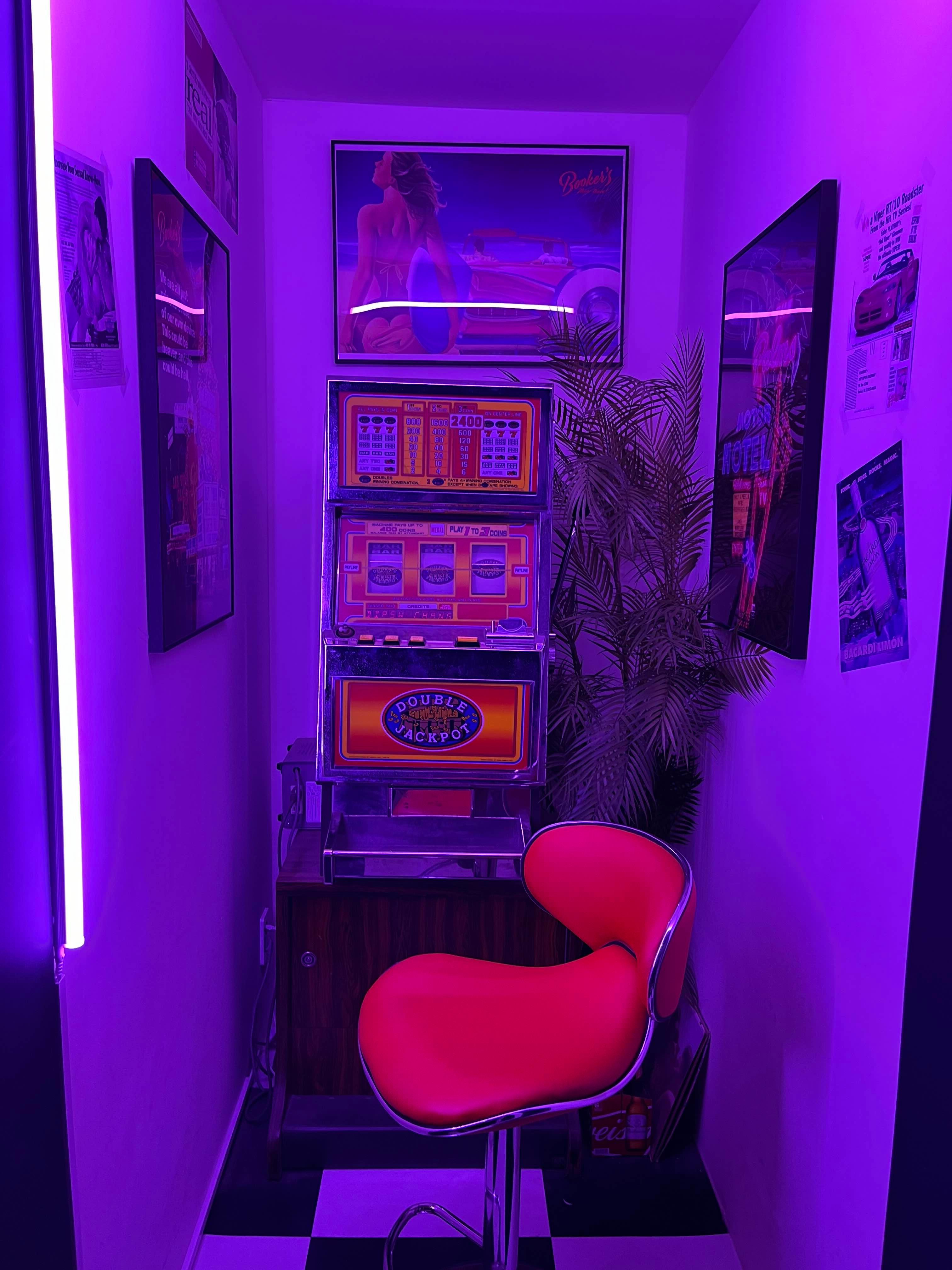 2층 끝에는 미국의 상징 카지노 머신이 있더라구요. 실제 동작하는 머신은 아니지만 미국 분위기가 물씬 나는 인테리어 입니다. ㅋㅋㅋ 여기서 사진찍으면 정말 미국에 온 것 같아요 !!