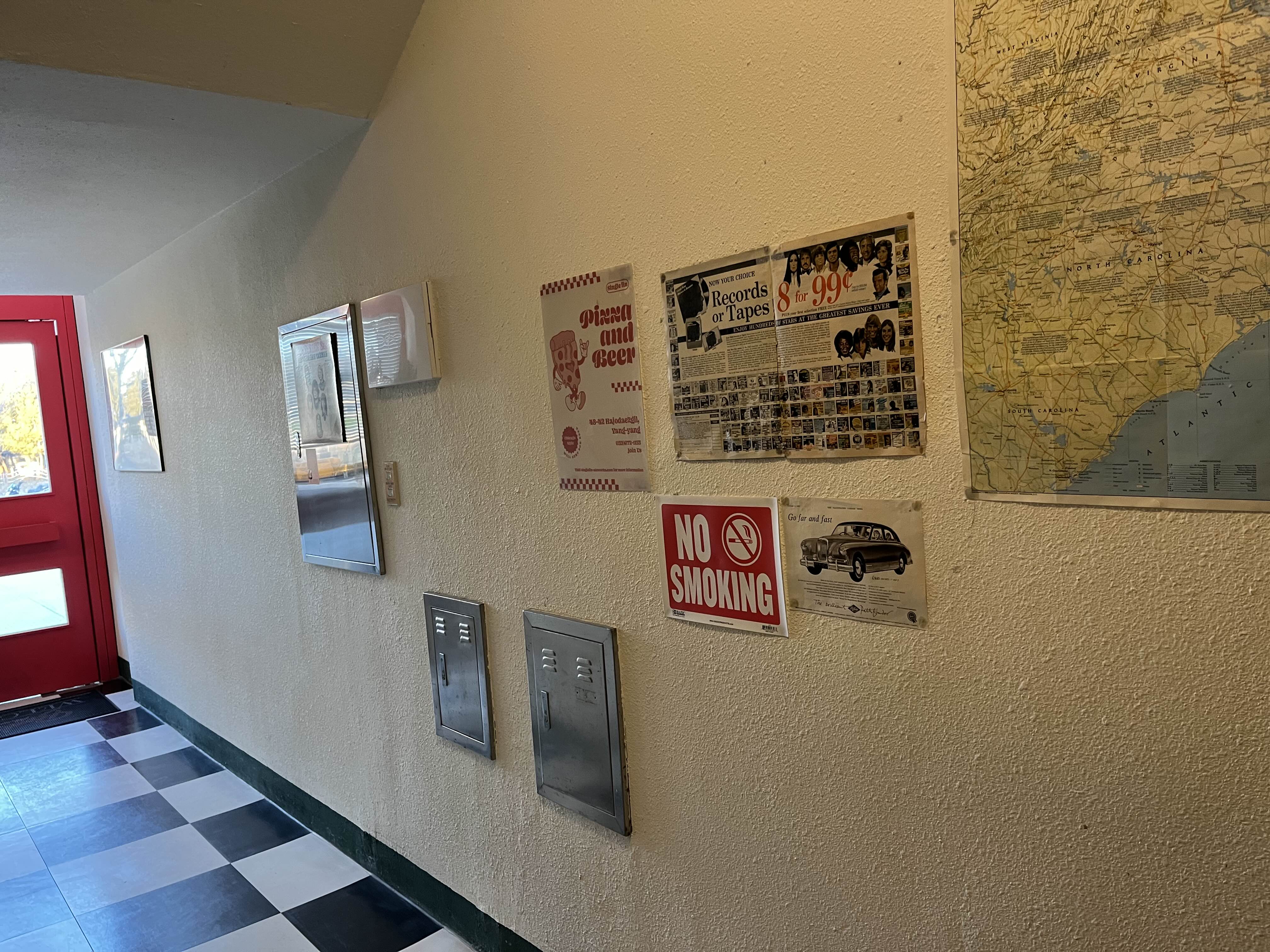 호텔 한쪽 벽면에는 거대한 미국 포스터와 샤워부스가 설치되어 있는데요.