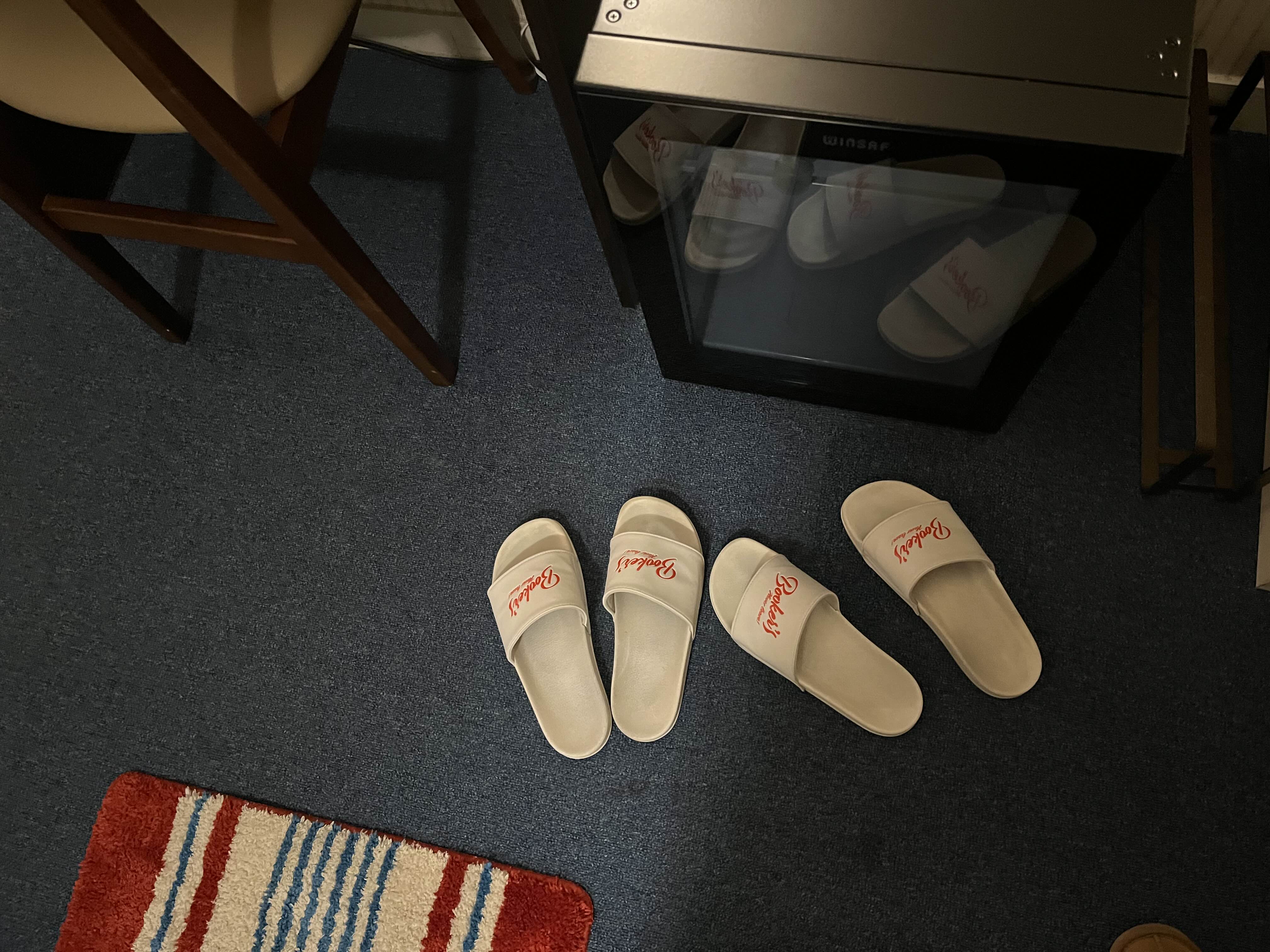 바닥은 카펫으로 되어 있고 부커스 호텔 슬리퍼가 마련되어 있습니다 : )