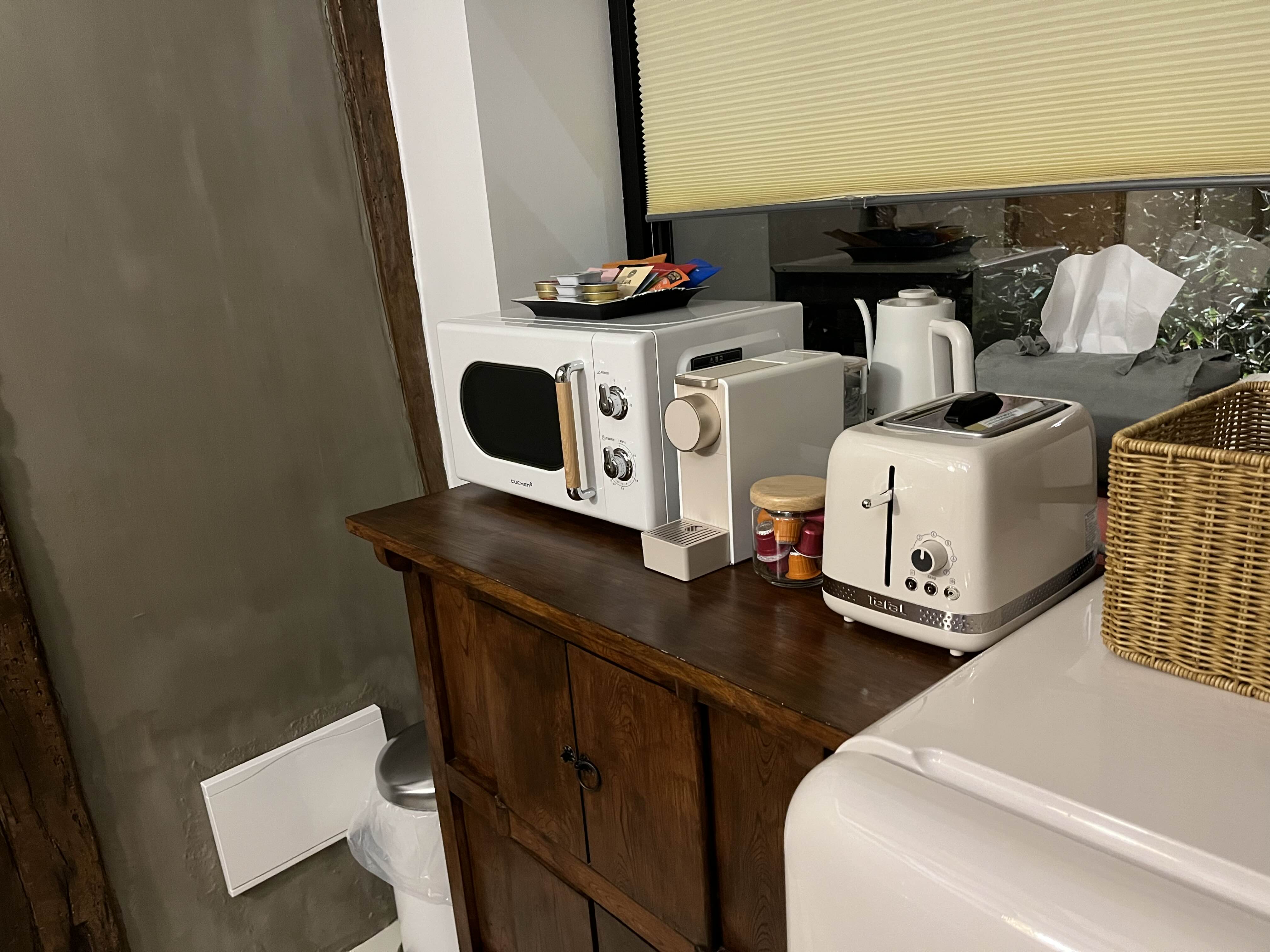 밖거리는 주방이 없어 취사가 불가하다는 단점이 있지만, 대신 전자레인지, 토스트기, 커피머신이 구비되어 있습니다.