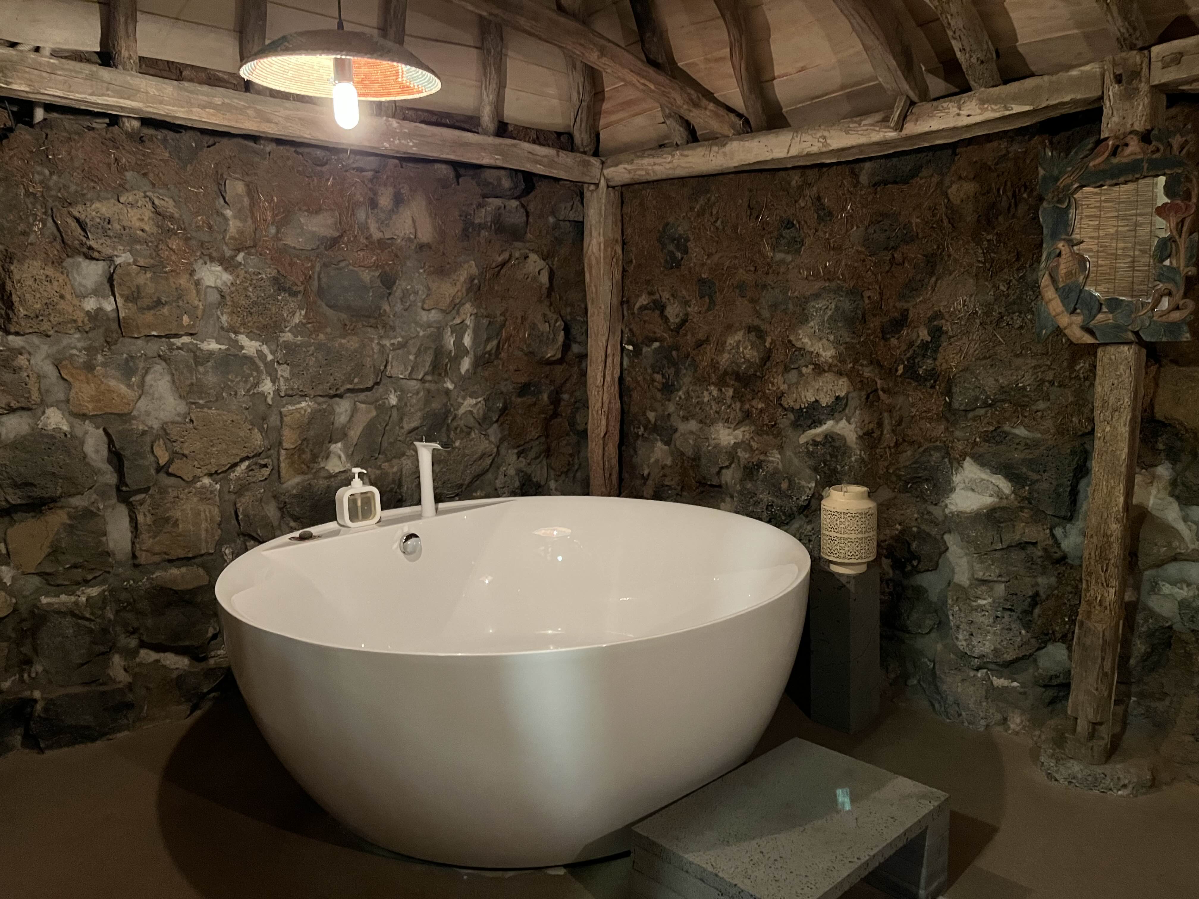 밖거리에는 욕조대신 샤워부스가 있고, 안거리에는 야외 욕조가 있습니다.