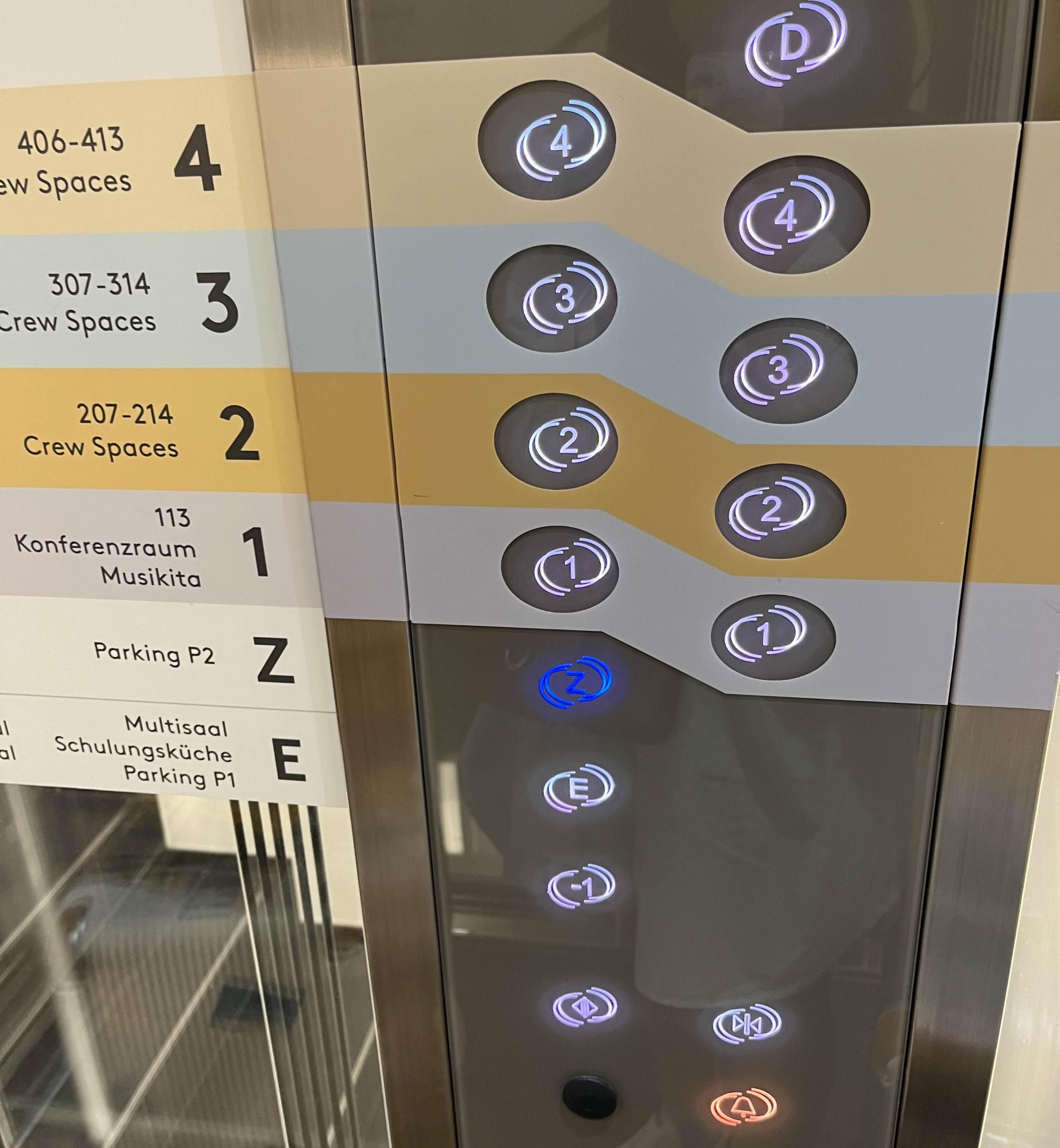 건물은 최신식이었고, 엘리베이터도 크고 투명 유리로 되어 있었다.