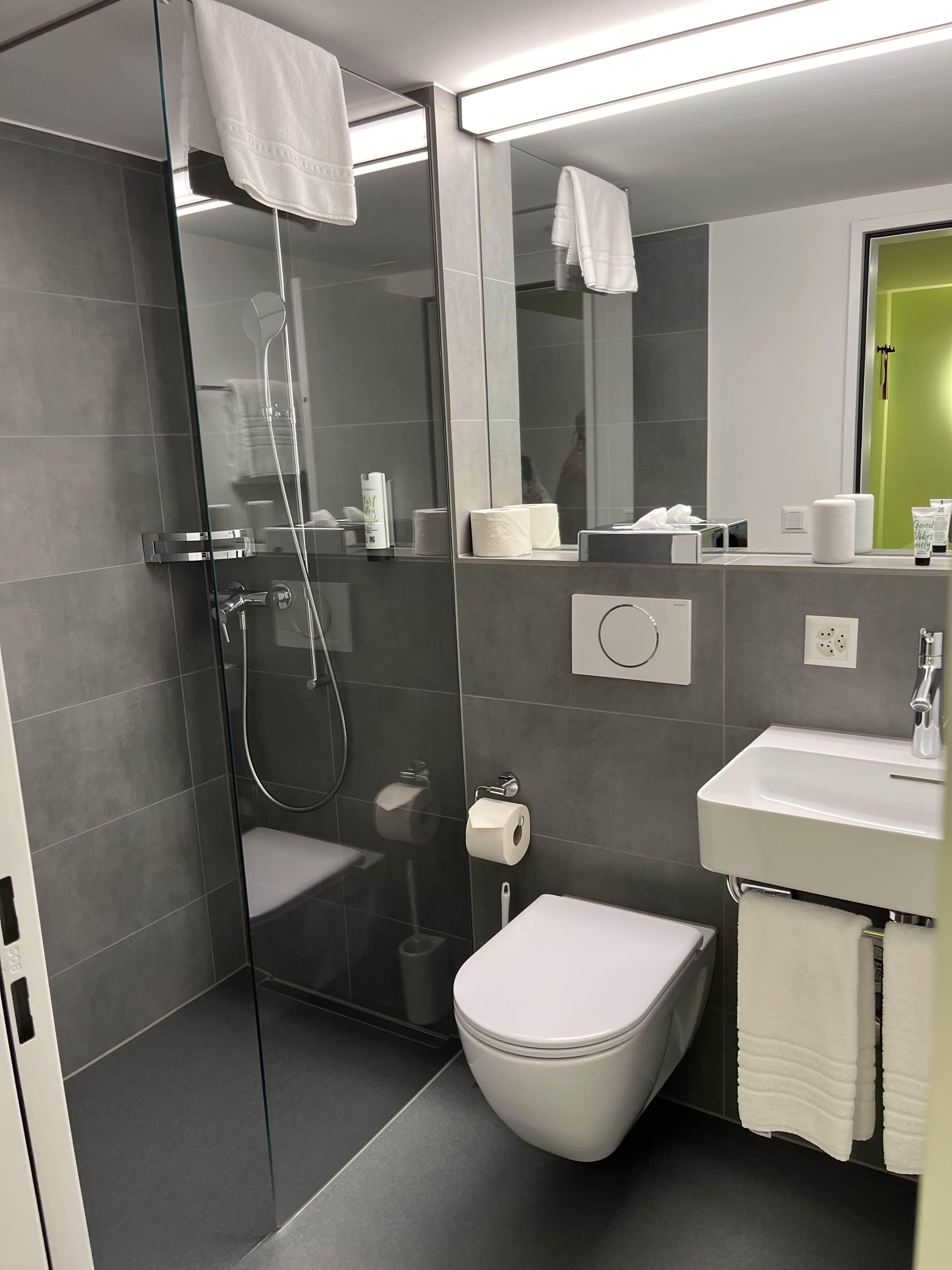 주차는 건물 내 주차가 가능했고, 돈은 따로 지불해야 했다. (아고다에는,, 주차 무료라고 써있었는데 실제로는 20CHF 정도 주차비를 지불했던 것 같다. // 투숙객을 위해 일부 할인은 되는데 무료는 아니였다!)