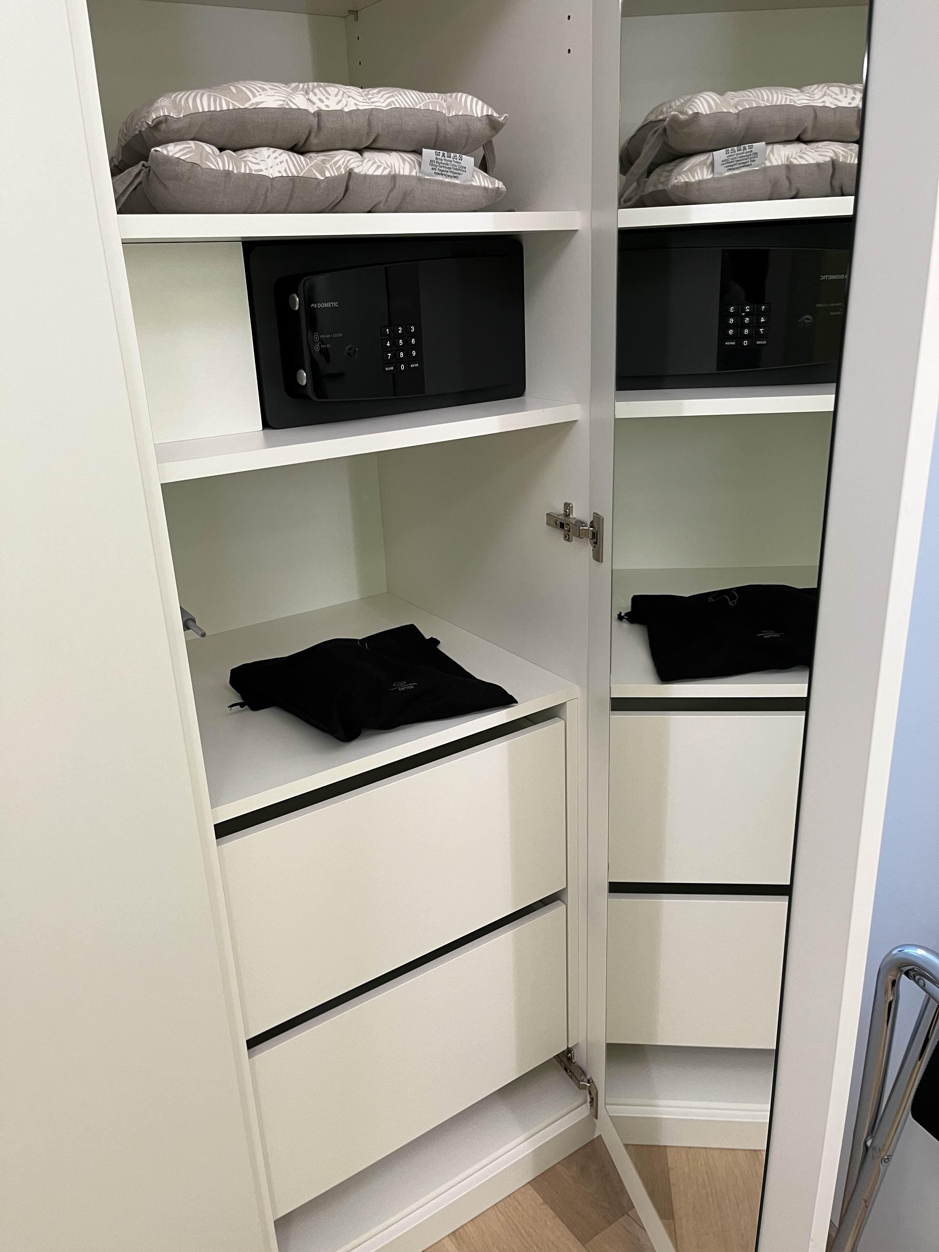 문 앞에는 간편히 손을 씻을 수 있는 세면대와, 옷장, 냉장고, 금고가 비치되어 있었다.