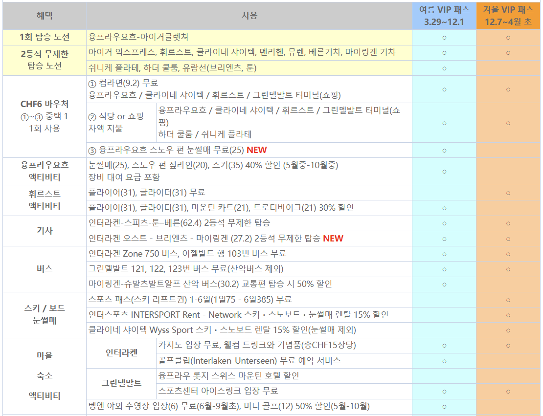 VIP 패스 2일권 // 인당 215CHF