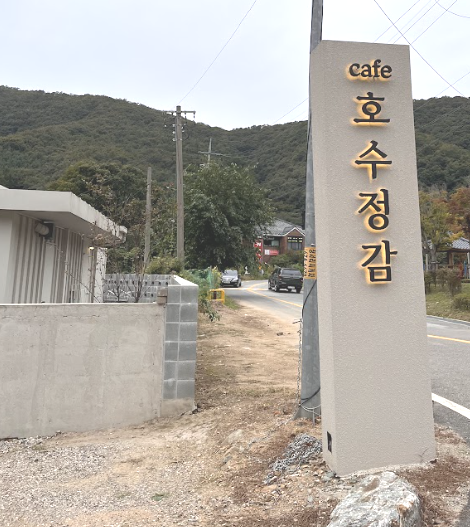 미산 저수지 바로 앞에 위치한 호수정감 카페입니다.