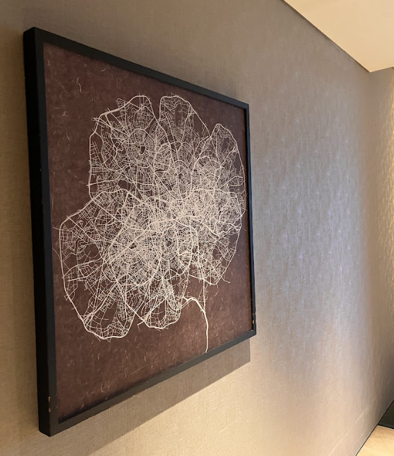 벽에 아름다운 작품이 걸려있고, 널찍한 킹베드, 소파가 있는 넓은 공간이 나옵니다.