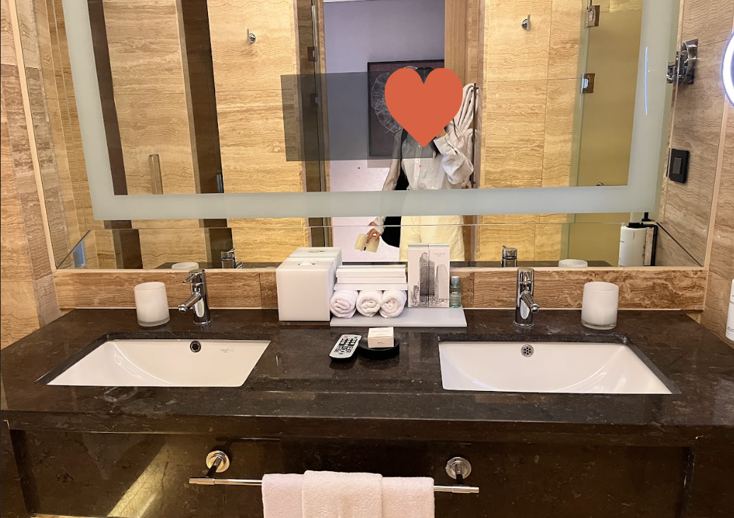 호텔 화장실은 세면대가 양쪽에 하나씩 있어서 너무 편리한 구조입니다 : )
