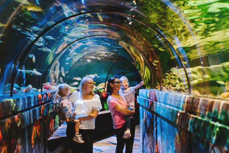 아쿠아리움의 하이라이트는 투명한 유리로 된 해저 터널로, 이곳을 걸으며 머리 위로 이동하는 상어와 가오리, 거대한 바다거북이를 감상할 수 있습니다.