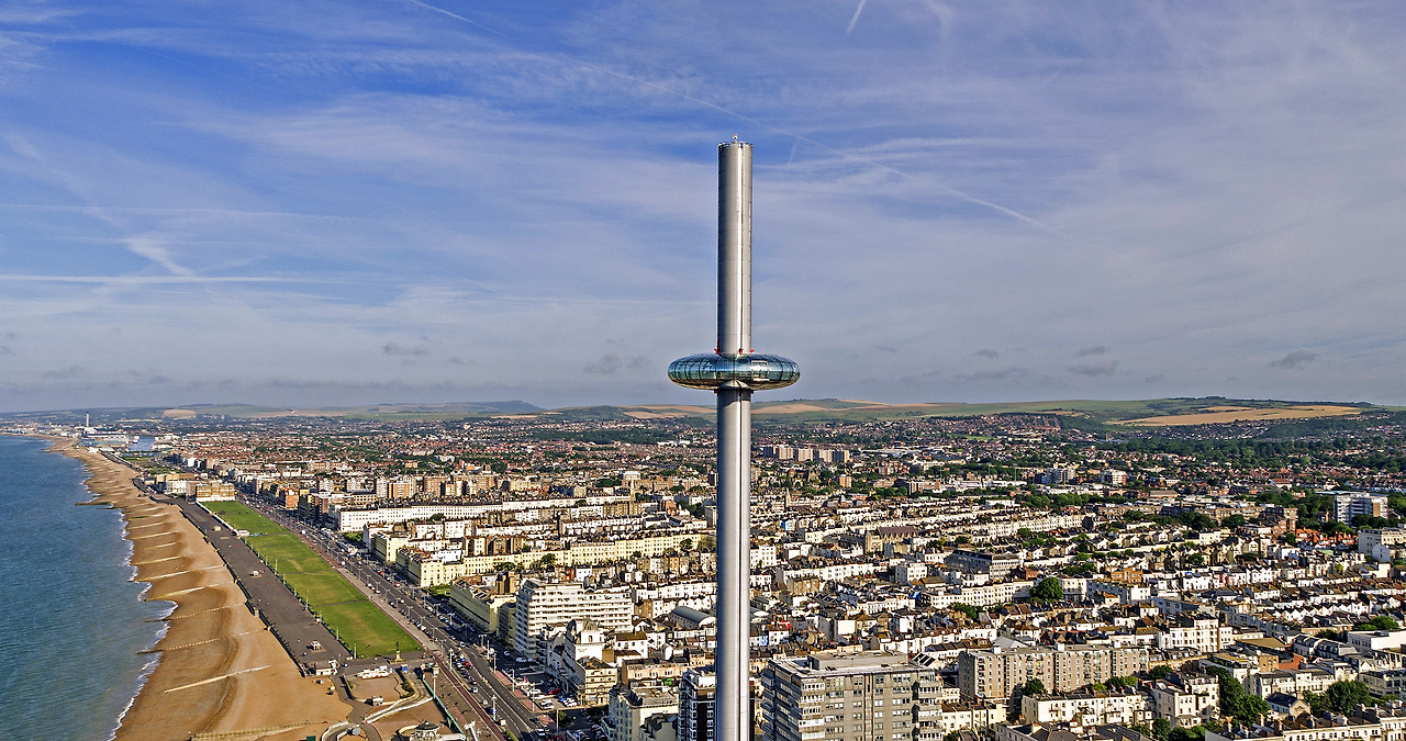 British Airway i360은 브라이튼 해변에 위치한 독창적인 전망대로, 하늘에서 도시와 해안선을 한눈에 감상할 수 있는 명소입니다. 세계에서 가장 슬림한 타워로 알려진 건축물로 약 162m 높이로 원형 관람 캡슐에 올라가 브라이튼과 Sussex 지역의 탁 트인 풍경을 감상할 수 있습니다.