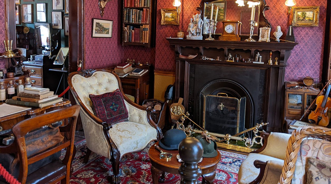 홈즈의 서재, 사건 파일, 파이프, 모자, 다양한 소품들이 전시되어 있어 셜록홈즈 팬들에게 특별한 경험을 제공합니다.