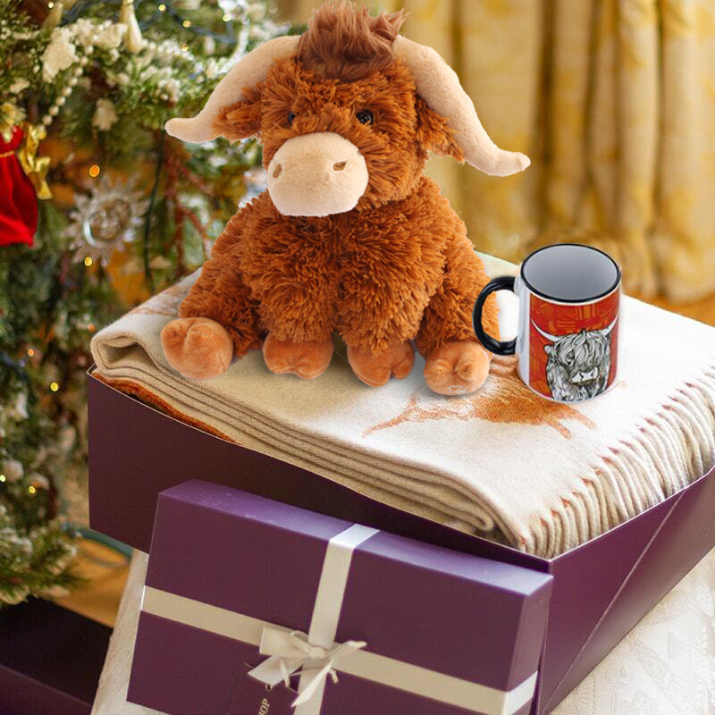 하일랜드의 소를 테마로 한 기념품은 인형, 머그컵, 자석, 열쇠고리 등 다양한 제품이 있으며, 귀여운 모양의 인형은 어른과 아이들에게 모두 인기 있는 선물입니다.