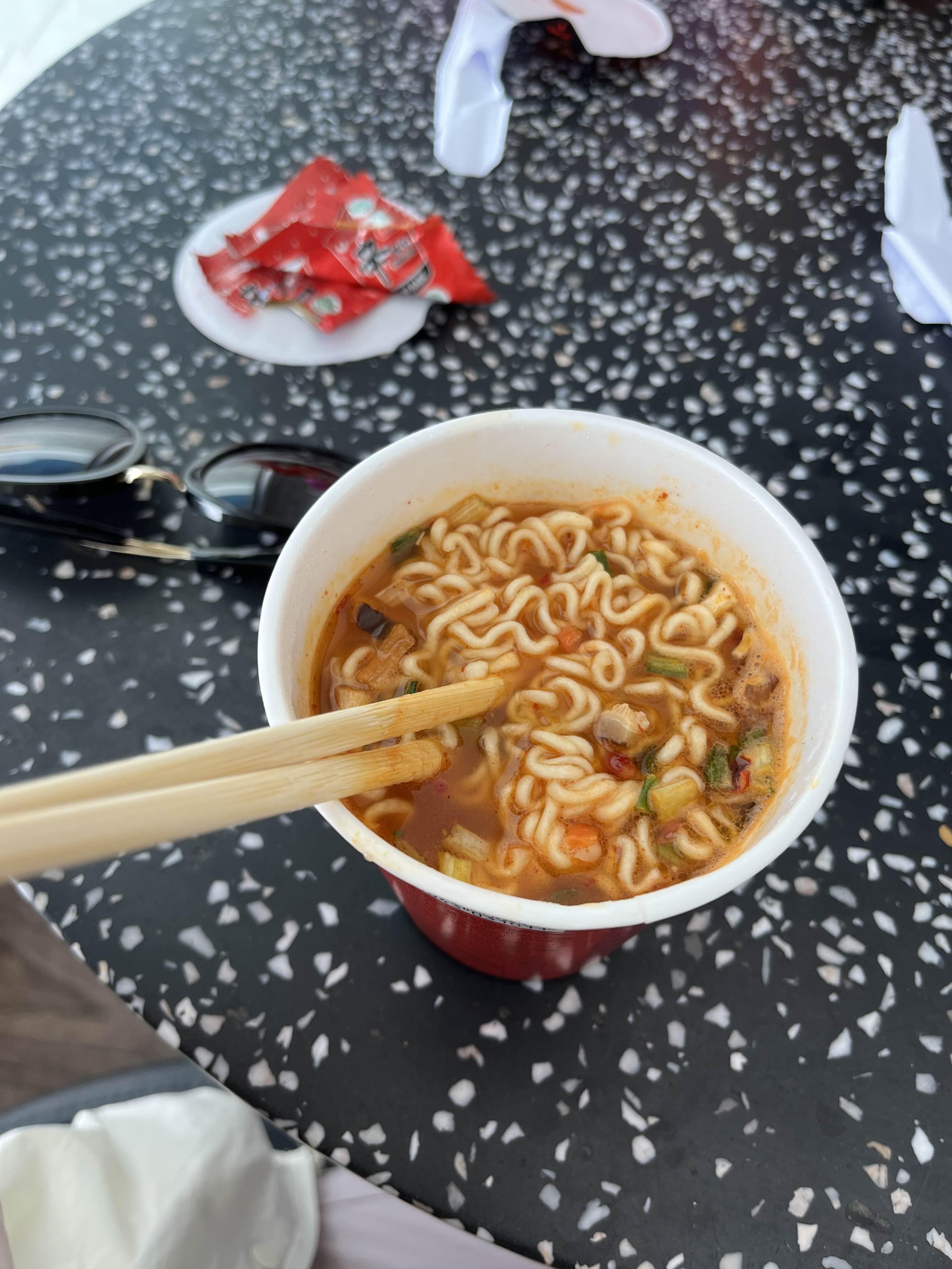 VIP 티켓을 카페 직원분에게 보여드리면 묻지도 따지지도 않고 바로 라면을 가져다 주셨다.! 헷