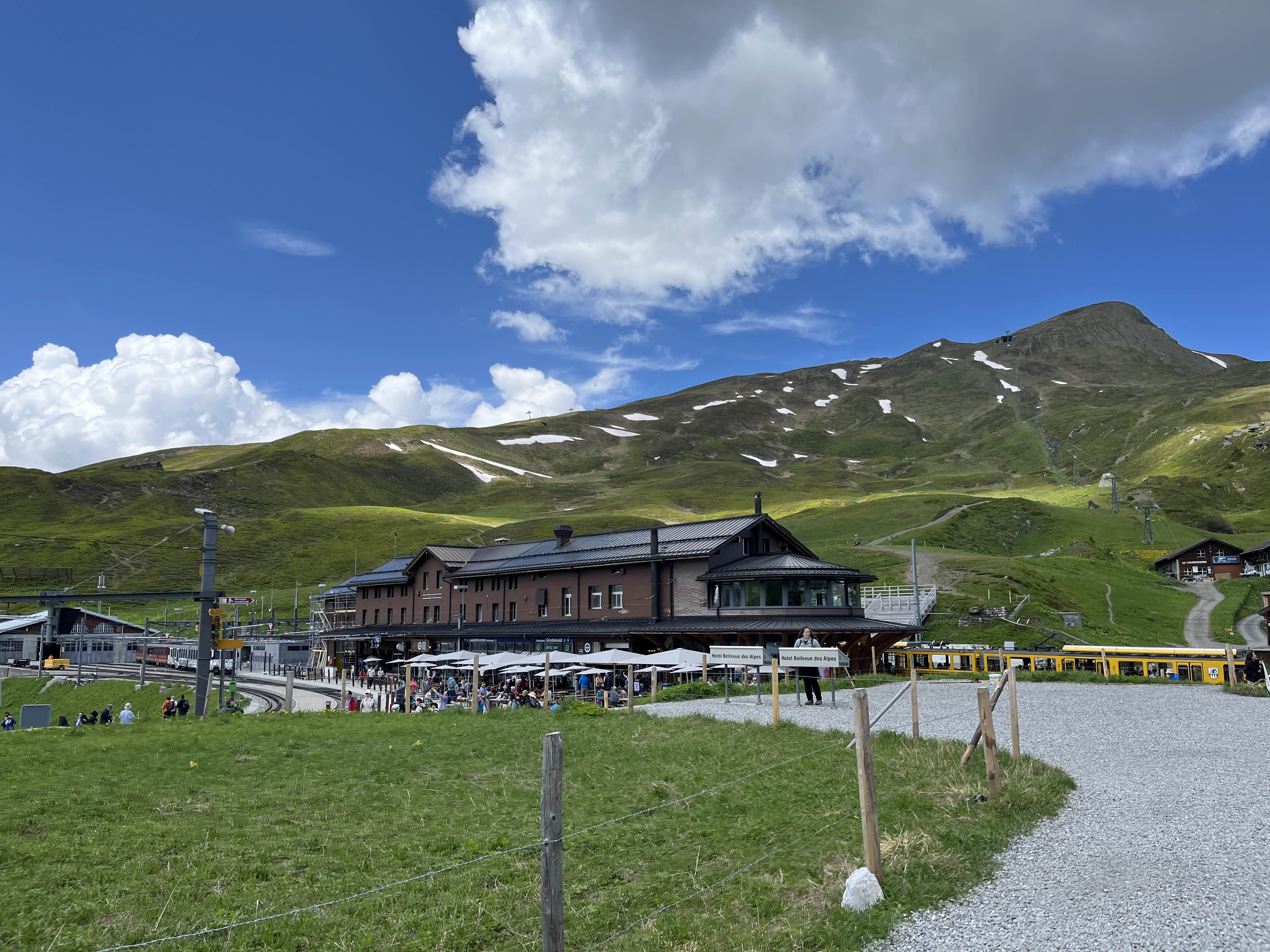 여기서 노란색 산악열차를 타고 그린델발트까지 내려올 수 있다.