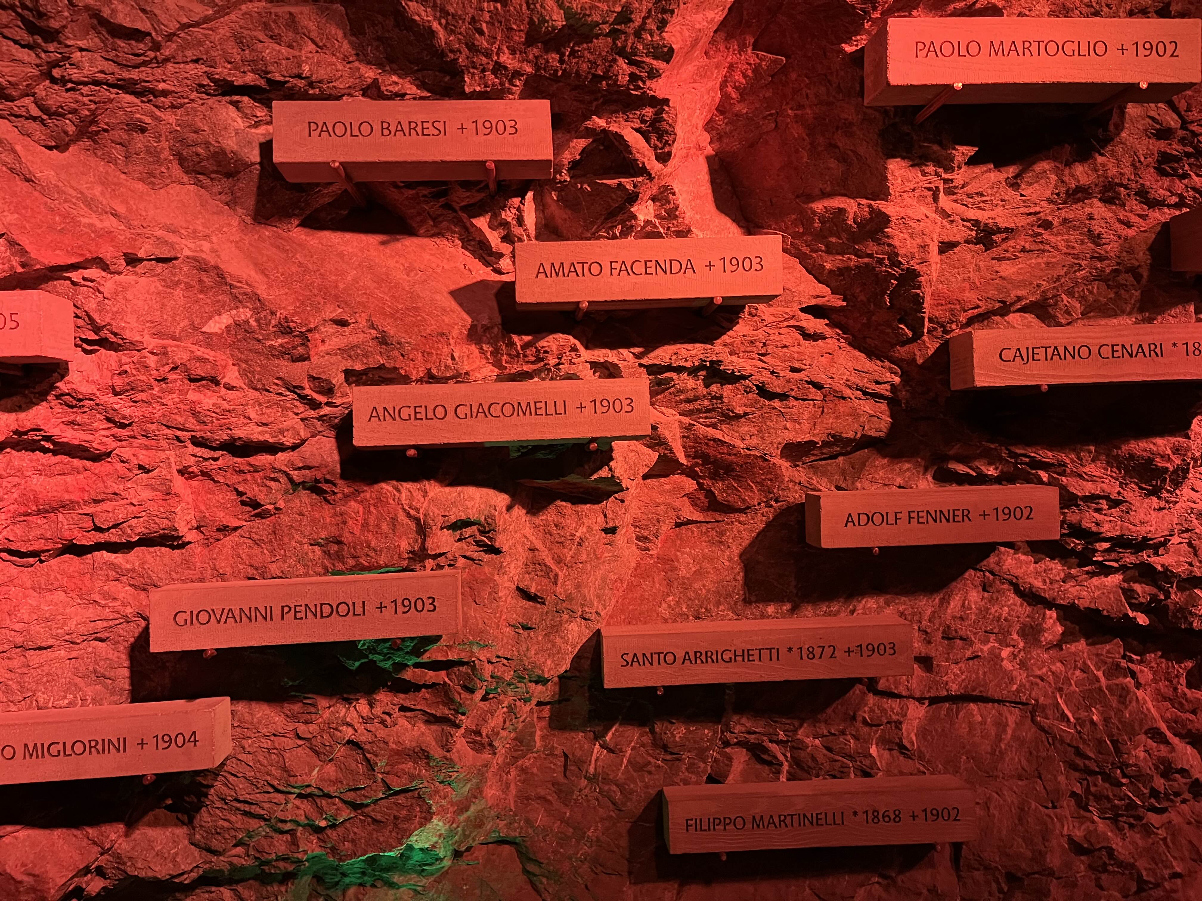 빛으로 만들어진 터널과 이 곳을 등반한 사람들의 이름이 적혀있었다.