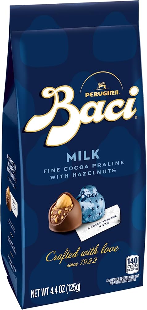 헤이즐넛과 다크 초콜릿이 조화를 이루며, 포장 안쪽에는 사랑의 메시지가 담기 작은 종이가 들어있어 선물용으로도 인기가 많은 제품입니다.