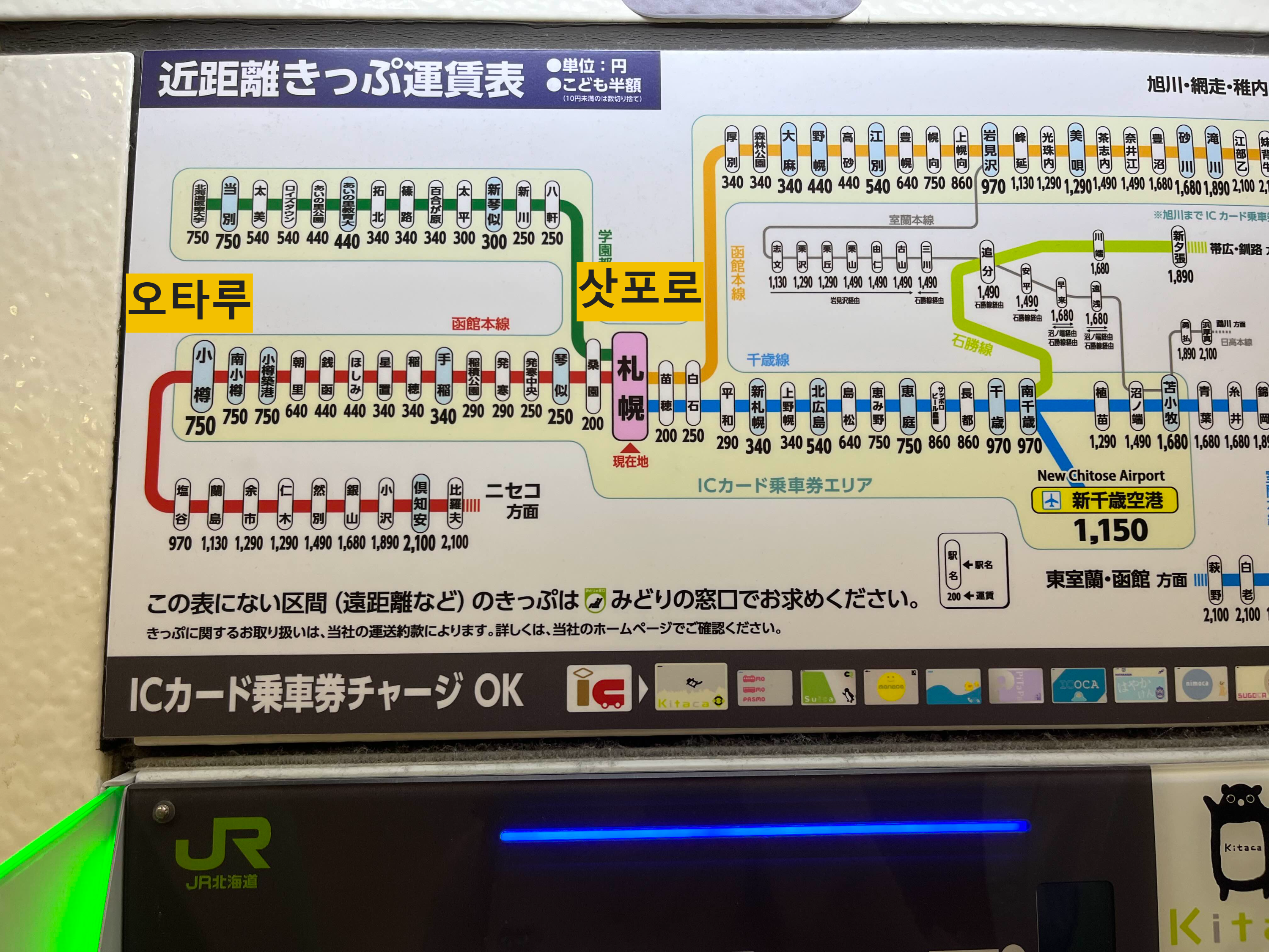 아래 사진에 보이는 머신에서 쉽게 표를 구매할 수 있는데, 우리는 이번에도 헤맸다..ㅎㅎ 오타루 가는법에 대해 조금이라도 찾아보고 올걸.. ㅜ_ㅜ P 의 여행은 우당탕탕이다.