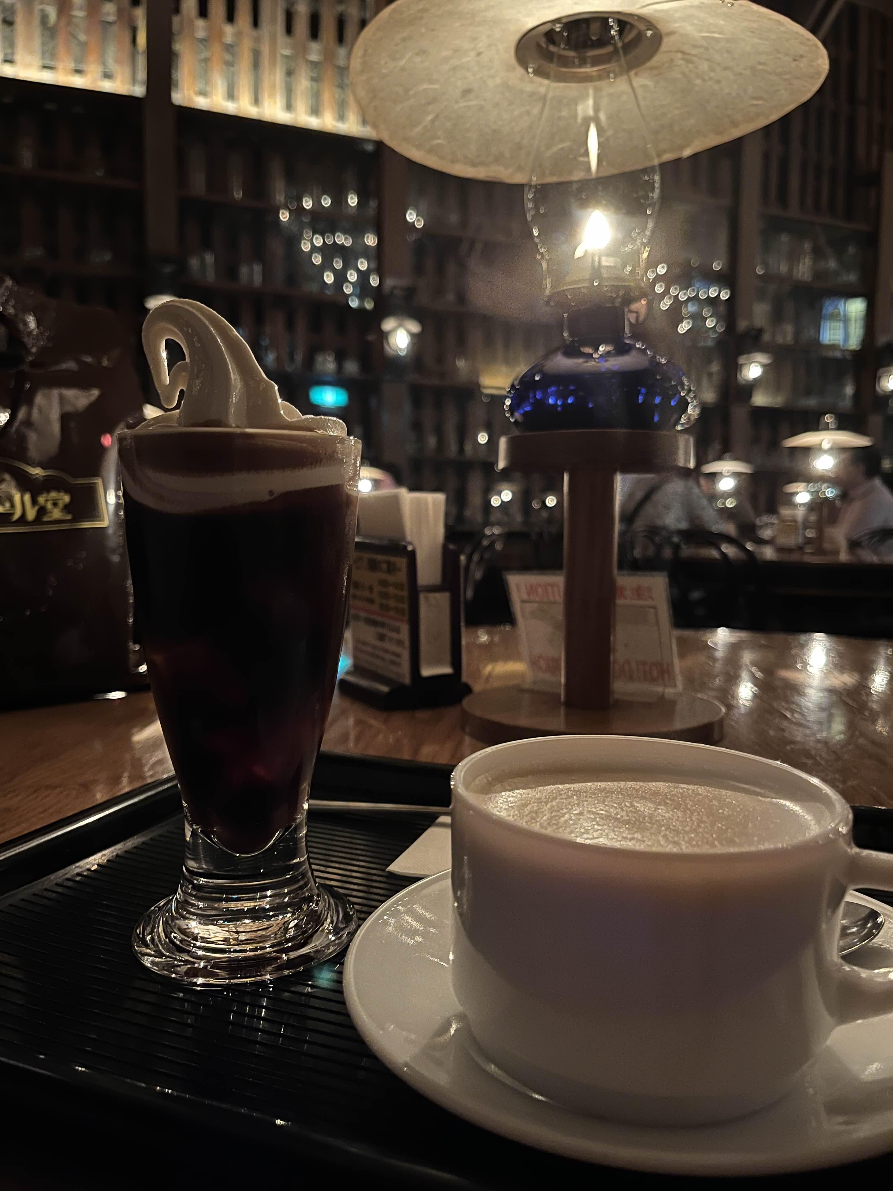 우리가 간 카페는 기타이치홀로 목조 인테리어와 가스등이 어우러진 분위기 좋은 카페였다.