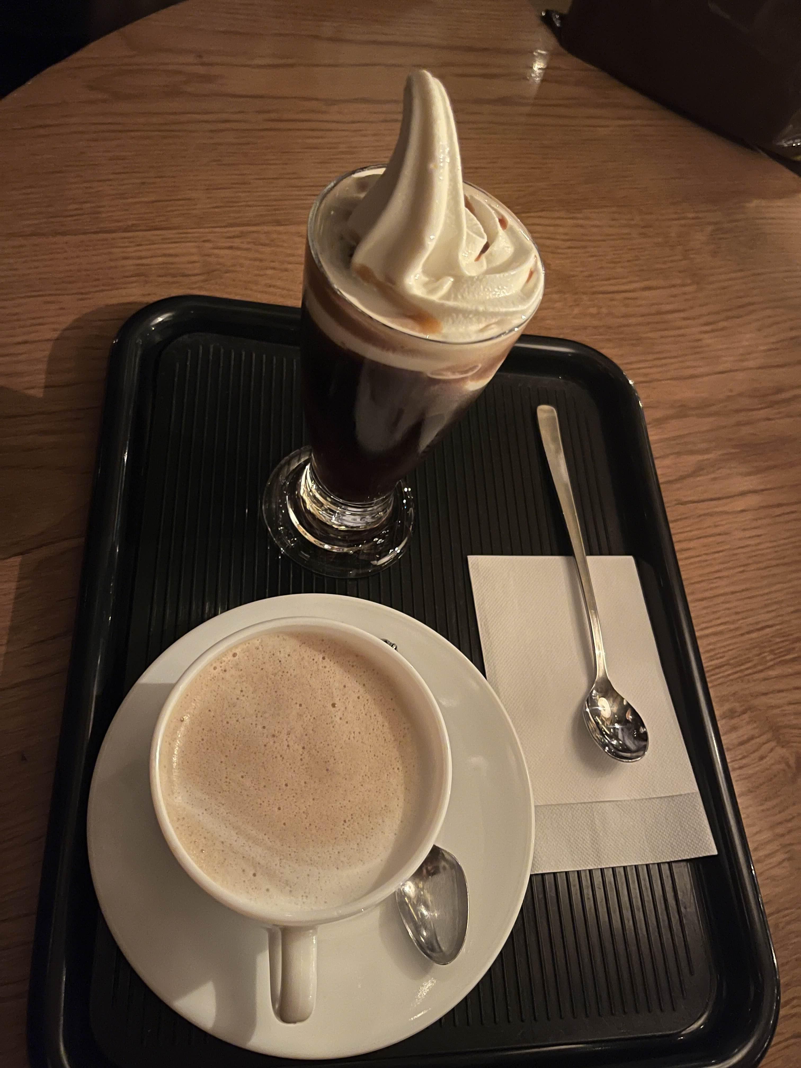 이곳은 들어가면서 문앞에서 선주문 해야되는 곳으로 우리는 아포카토와 비슷한, 아이스크림이 올라간 아이스 커피와 따뜻한 카푸치노를 주문했다.