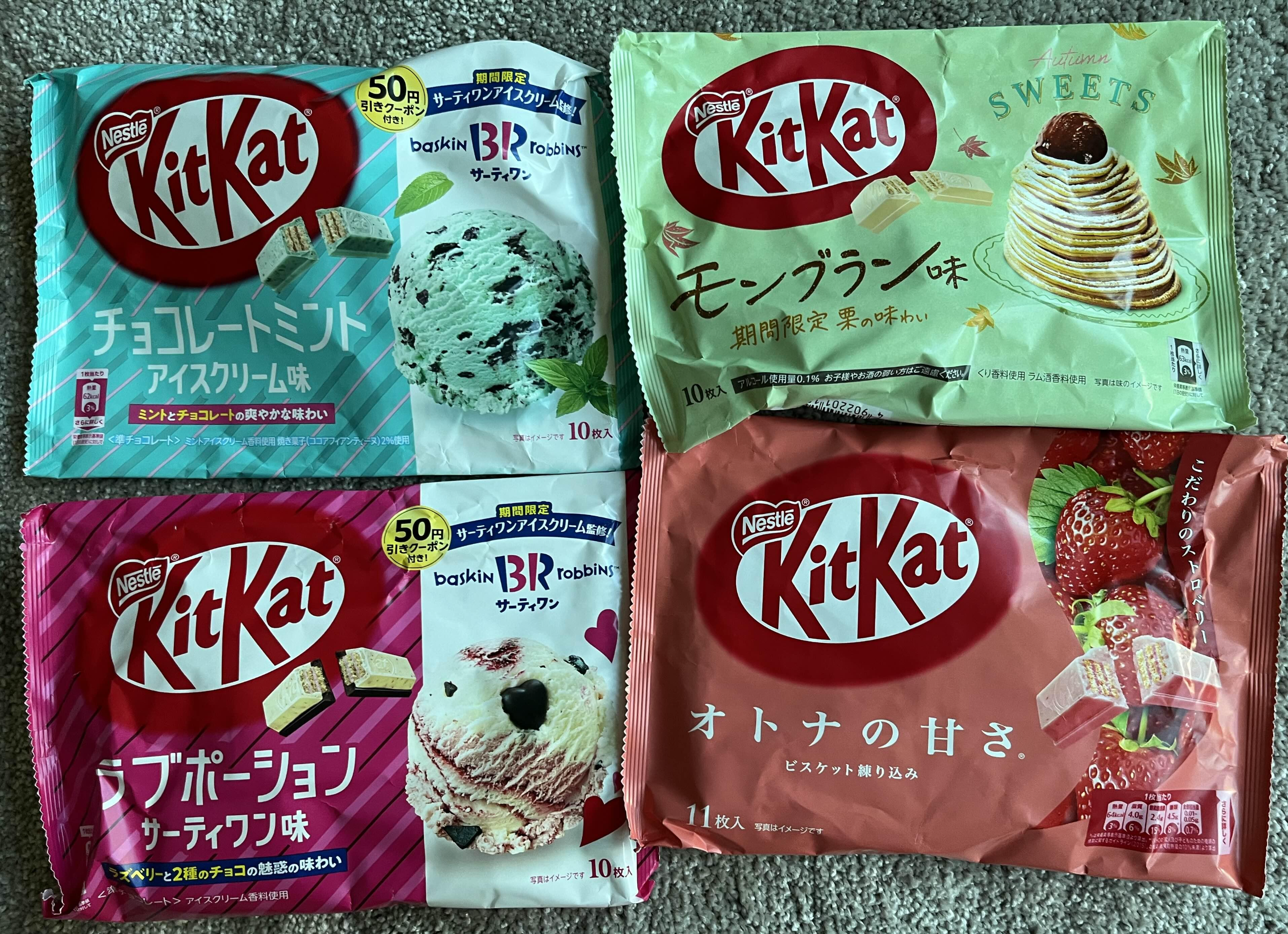 무엇보다 베스킨라빈스 맛의 민초, 사빠딸 키캣, 몽블랑 맛과 딸기맛의 키캣도 하나씩 구매했다.