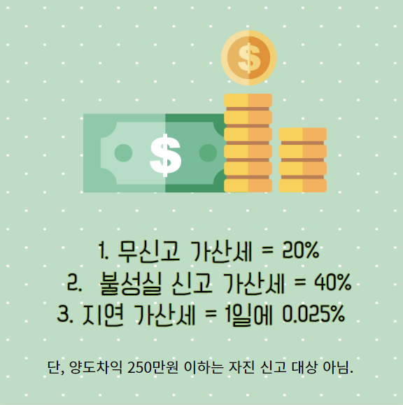 (단, 양도 차익이 250만 원 이하일 경우 자진 신고 대상이 아닙니다.)