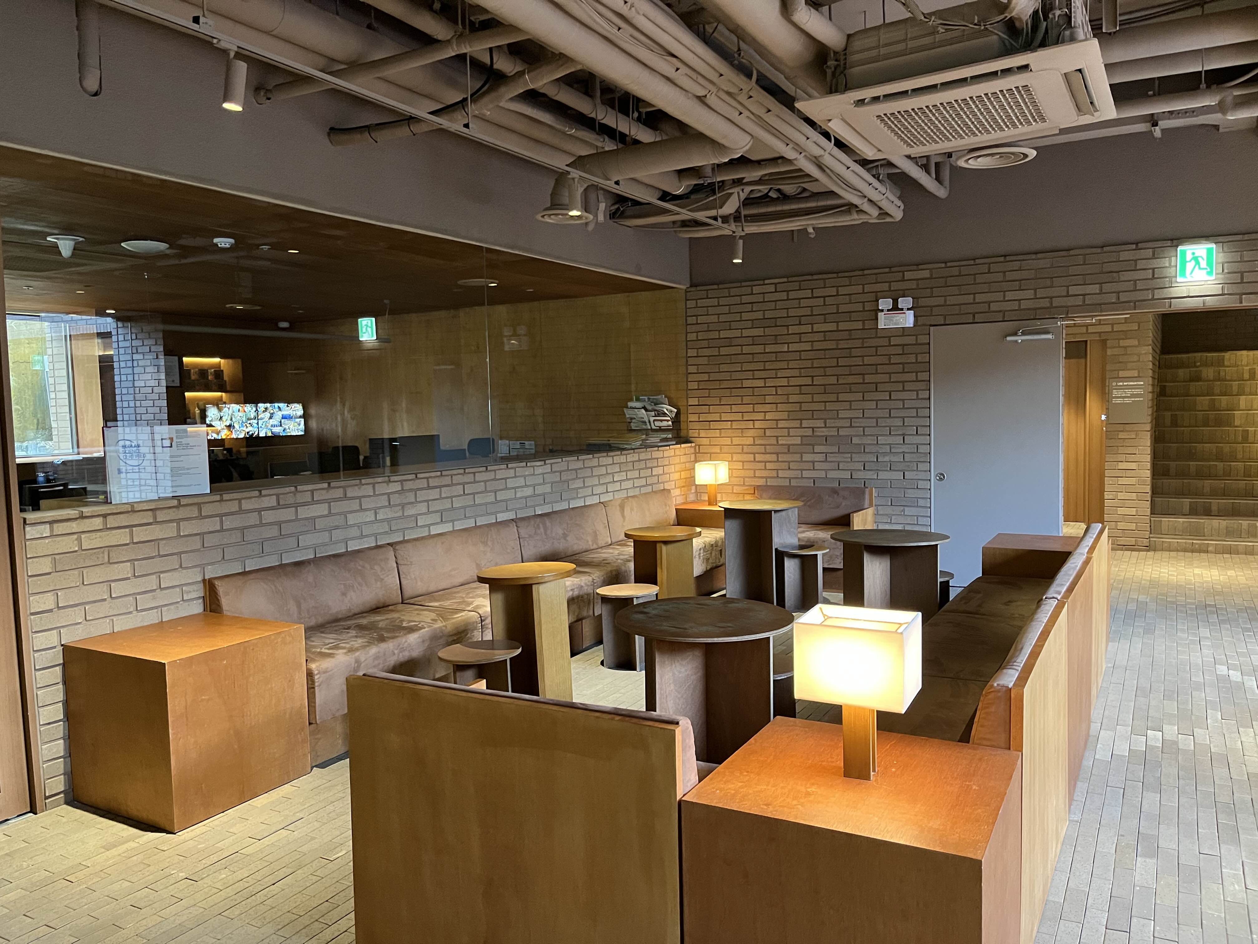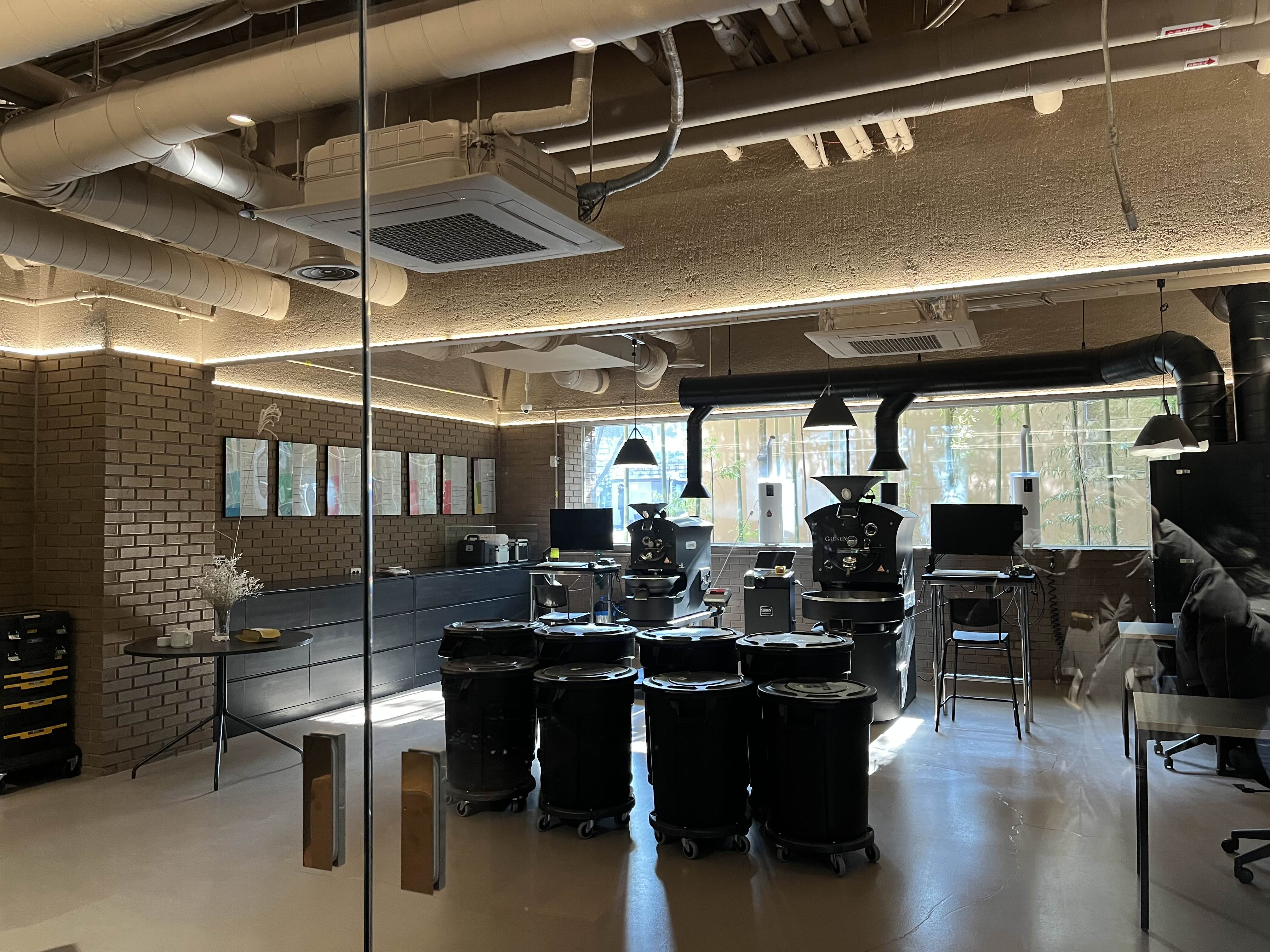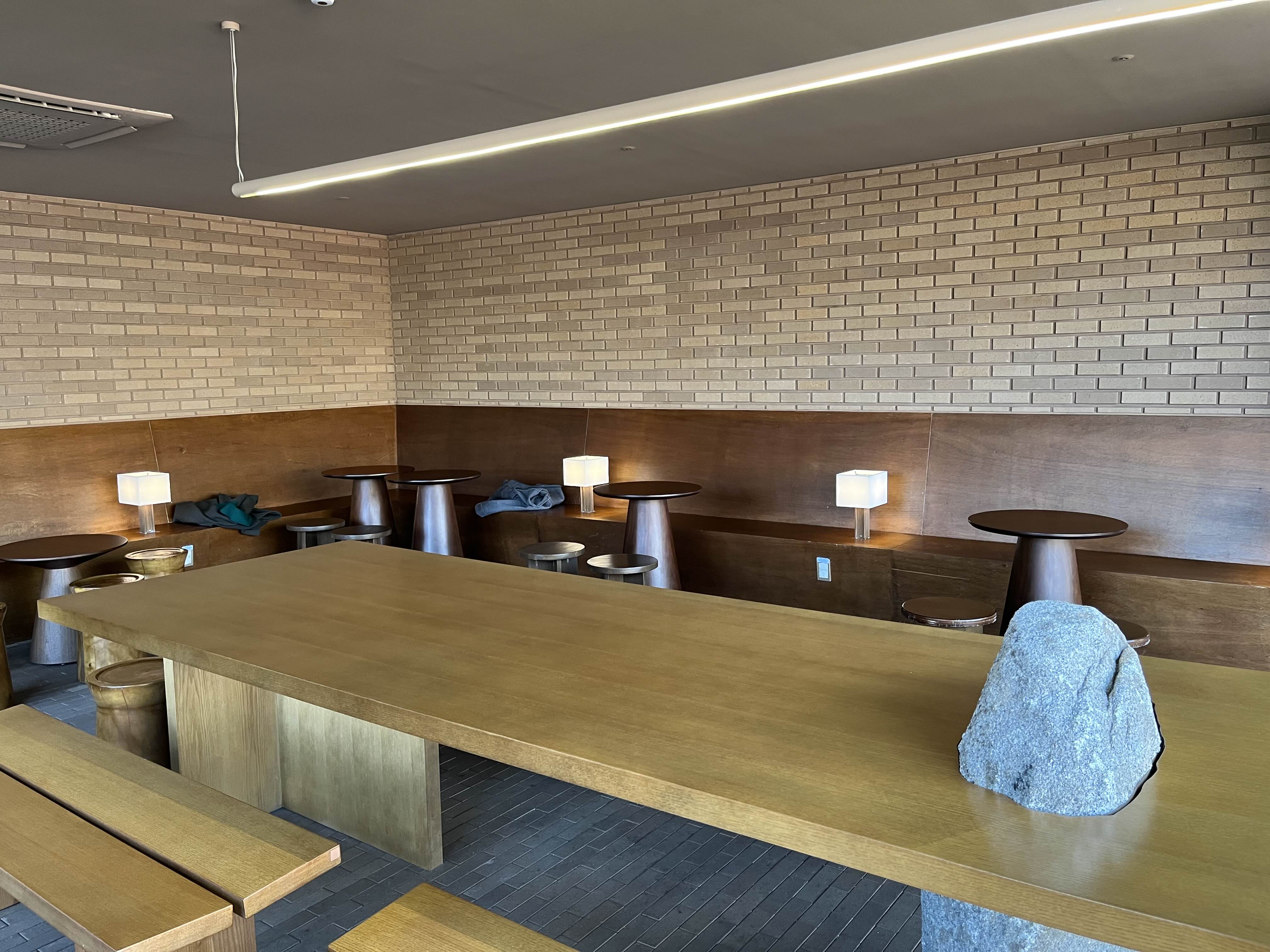 외관은 붉은색 벽돌로 구성되어 있으며, 카페 앞에는 물이 담겨있는 연못과 대나무 등 차분하고 모던한 분위기를 느끼실 수 있습니다.