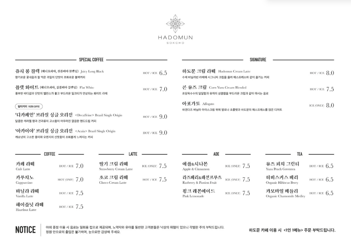 설악산 가는 길목에 위치한 카페로 '하도문 스테이' 숙소와 같이 운영하고 있습니다.