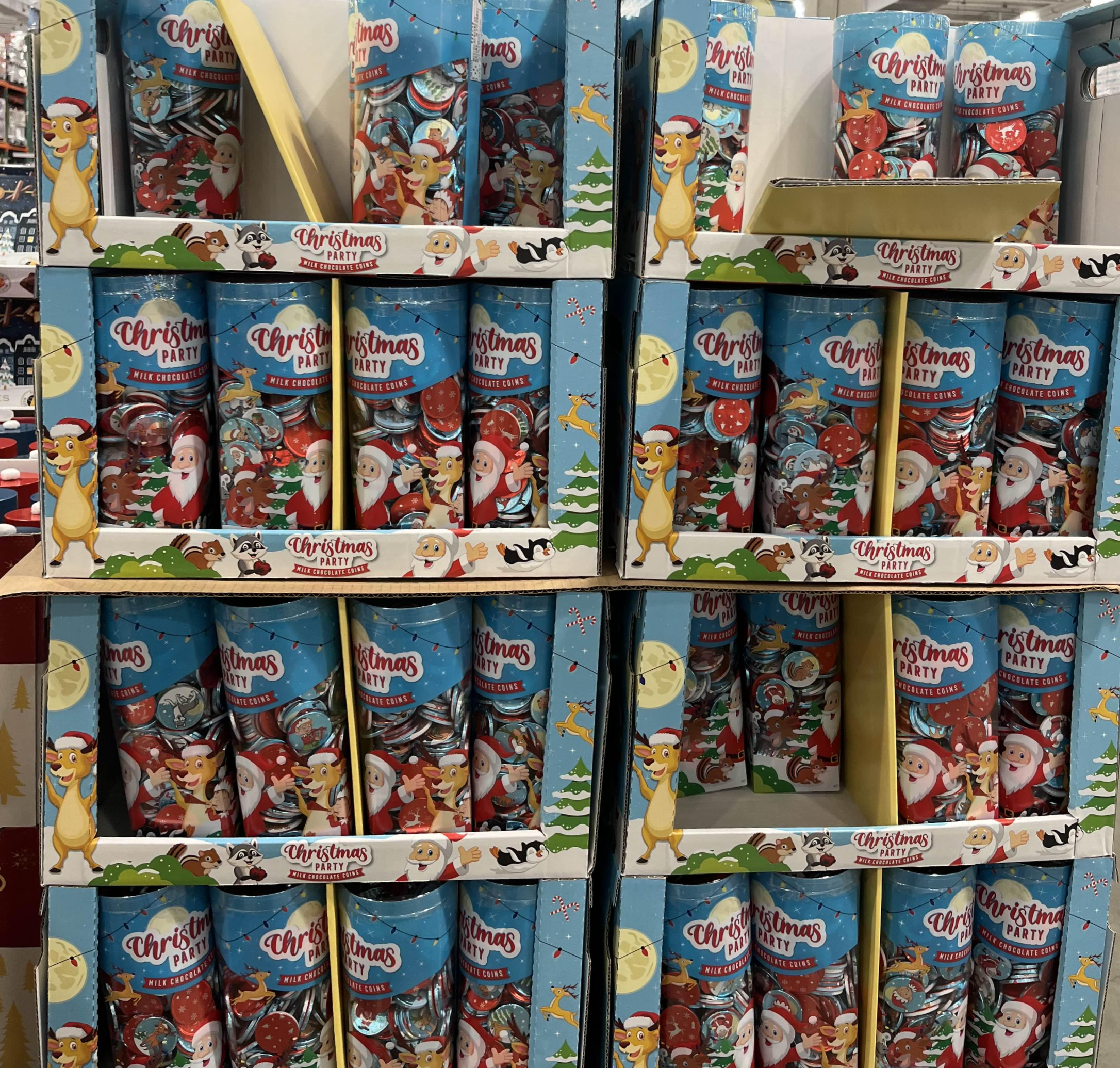금은 보화처럼 생긴 초콜릿이, 크리스마스를 기념하여 산타와 로돌프 장식으로 리디자인되어 출시된 초콜릿입니다.