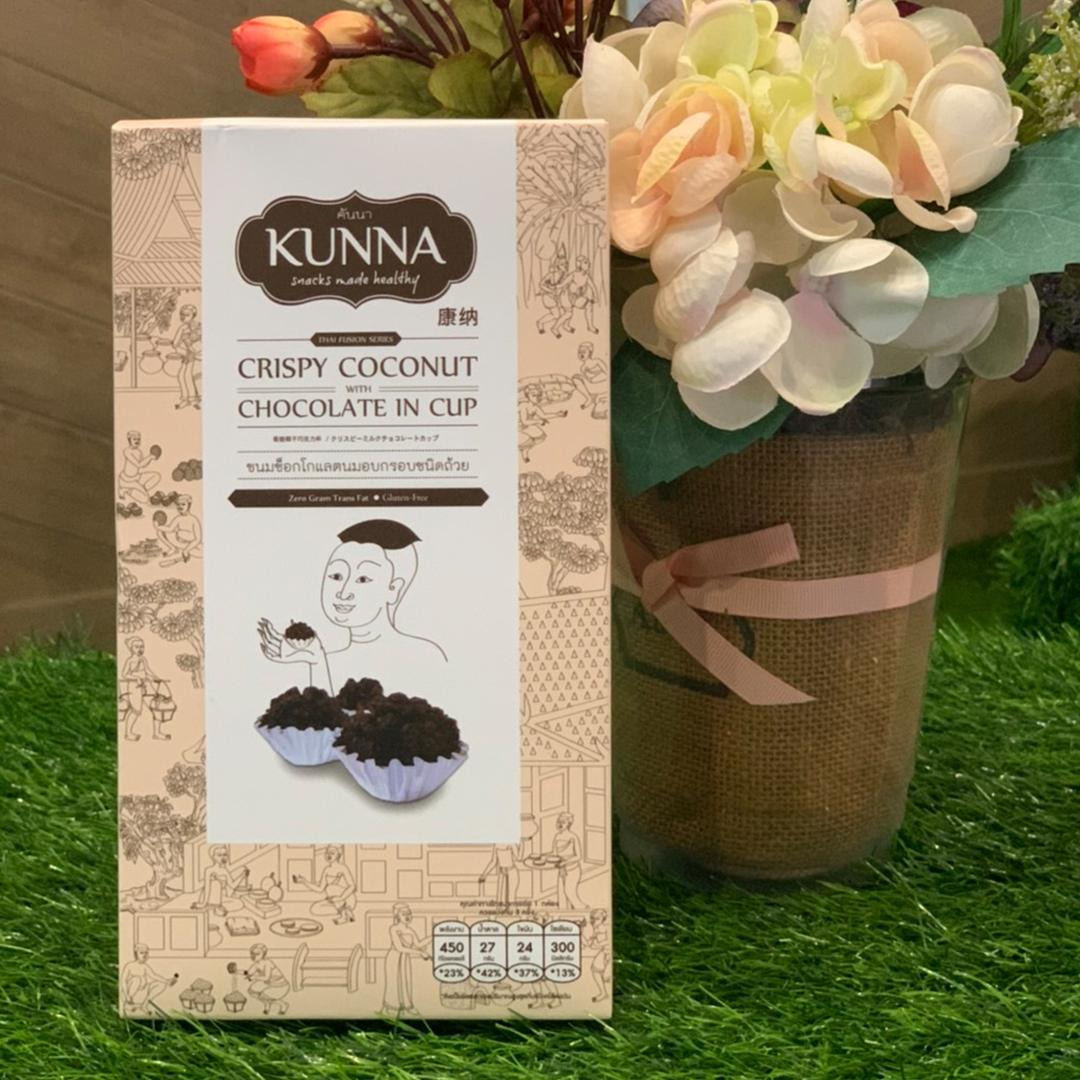 ✔️ Kunna는 태국에서 생산되는 고급 스낵브랜드로, 태국산 코코넛을 바삭하게 구운 후 초콜릿을 입혀 만든 코코넛 초콜릿 컵이 인기 있습니다.